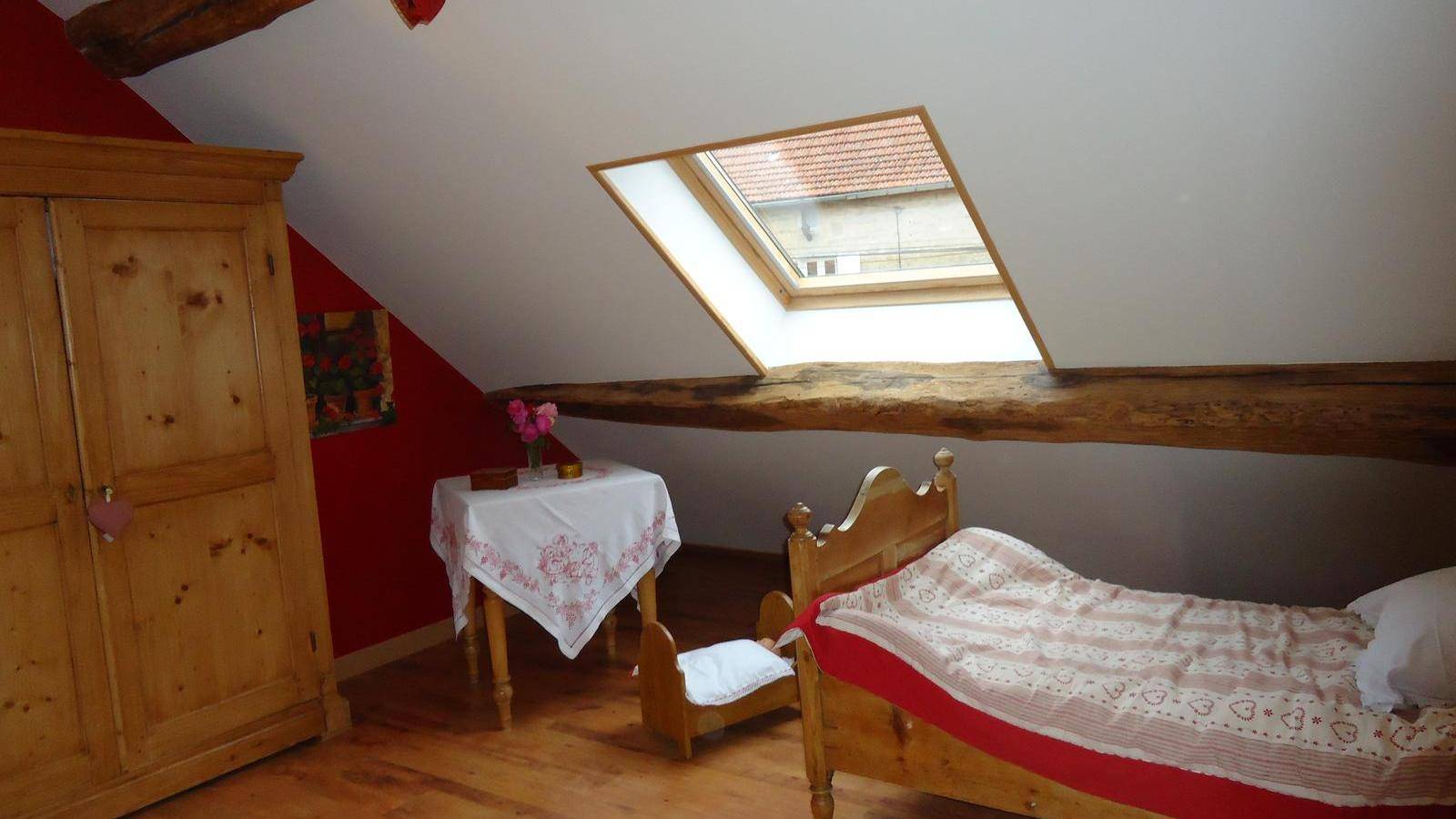 A farmer by choice, I have a farm with meadows, both sloping and rounded, for grazing and haymaking. There are blackberries in summer (and cows!), sometimes mushrooms in spring and autumn, orchids and a varied flora, hawthorn, wild rose, acacia at the end of May, lime in June, ... We have a family farmyard with chickens and rabbits, goats and sheep, I grow rapeseed-wheat-barley, hay and alfalfa and a certain art of living. Upstairs: 2 bedrooms, shared bathroom, kitchenette, children's play area.