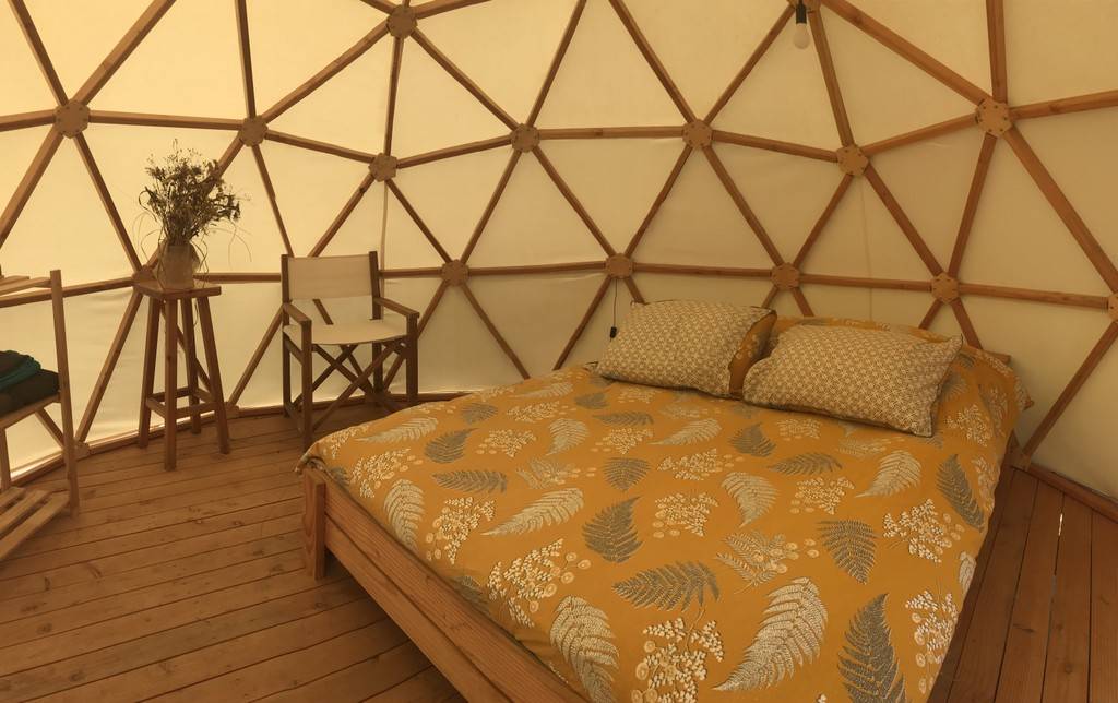 The dome will be your privileged corner. You'll also have access to the communal areas: the hangar with a lounge and kitchen area, plus sanitary facilities.