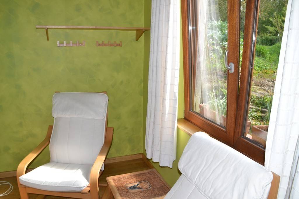 Our house is surrounded by a beautiful garden with an orchard of cider apple trees in a lush organic vegetable garden. The guest room with bathroom and toilet is located on the ground floor in an independent part of the house, ensuring peace and tranquility. A new studio with bathroom and kitchen is in the garden.