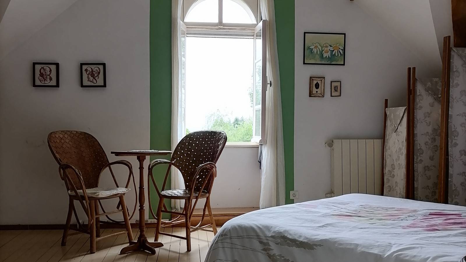 Gîte with one double bedroom and a double bed in the living room. South-facing garden view. Outdoor space. Sleeps 3 max.