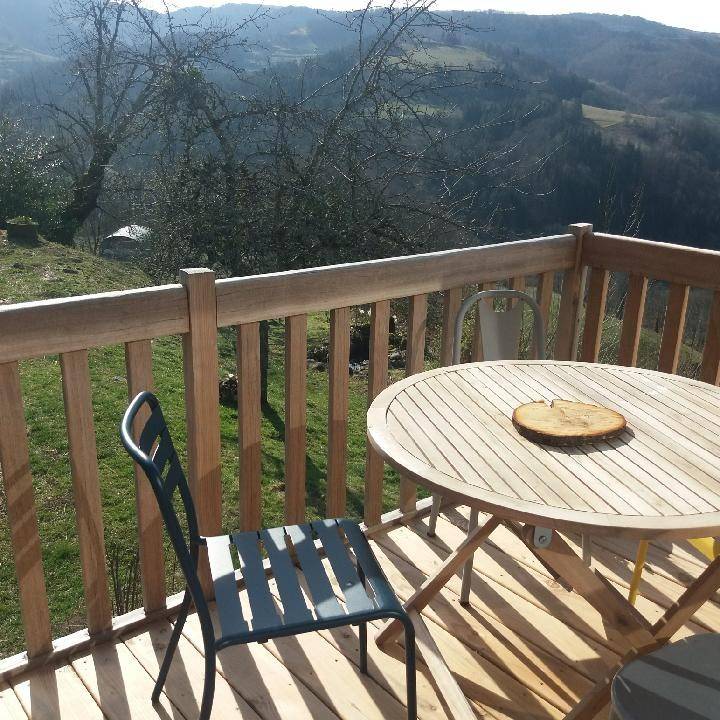 Gîte Sermilik d'une capacité de 4 personnes. Gîtes au calme dans un écrin de verdure avec vue sur les collines et forêts de la vallée. RDC avec terrasse donnant sur le jardin. Coin cuisine, salle de bain et toilettes, un lit double + 2 lits simples superposés.