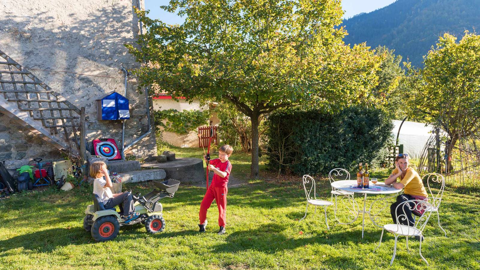 Come and spend a relaxing holiday on our mountain farm. Hike off into the mountains or set off to the local villages to buy local foods. And finish the day with a wine tasting of our own production ... alitutde wine, 100% natural !