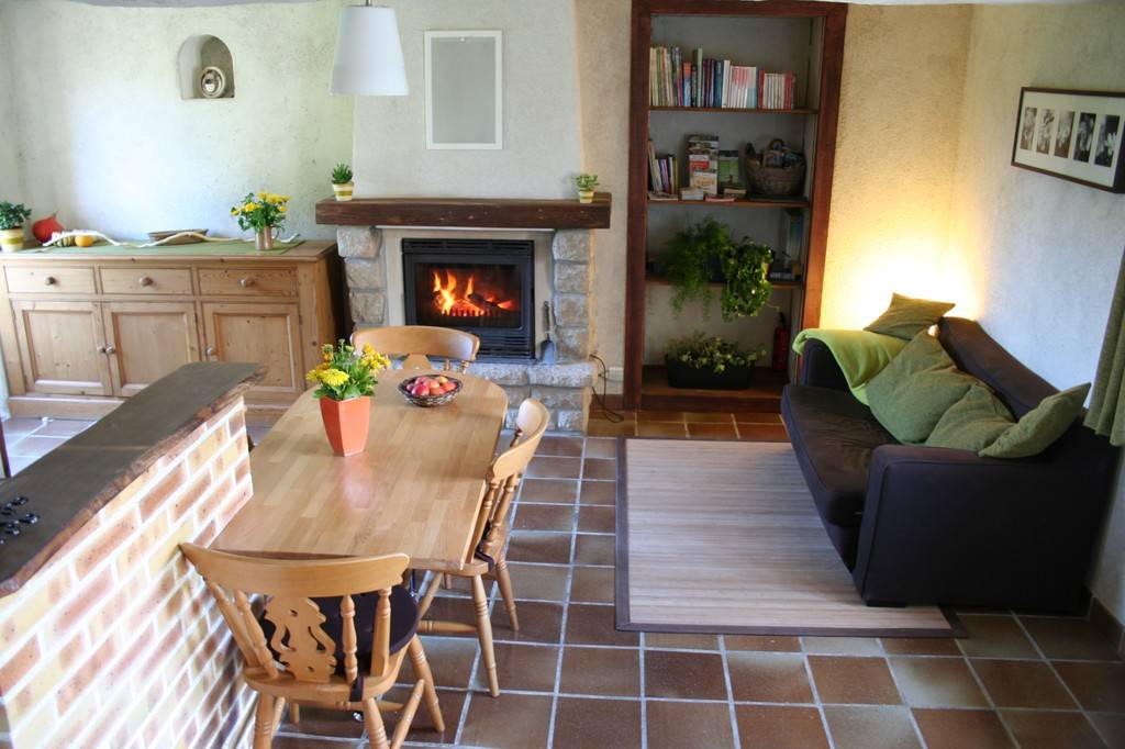 We offer a 2/4-person gîte, renovated with healthy materials, in a quiet, restful location. The fireplace with wood-burning stove creates a cosy atmosphere.