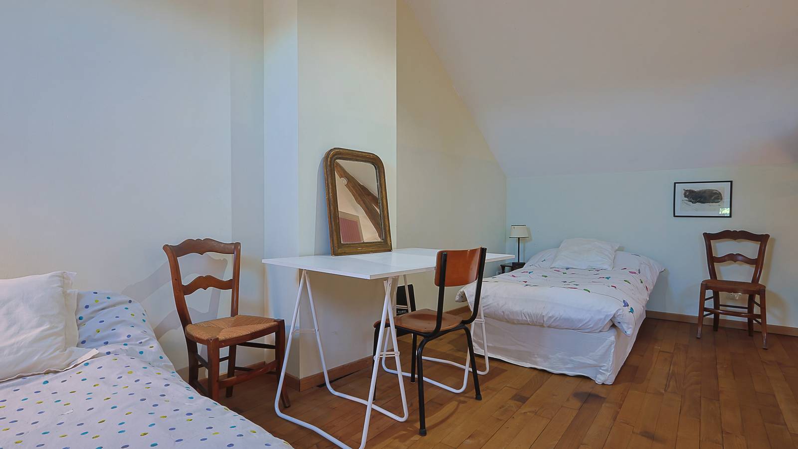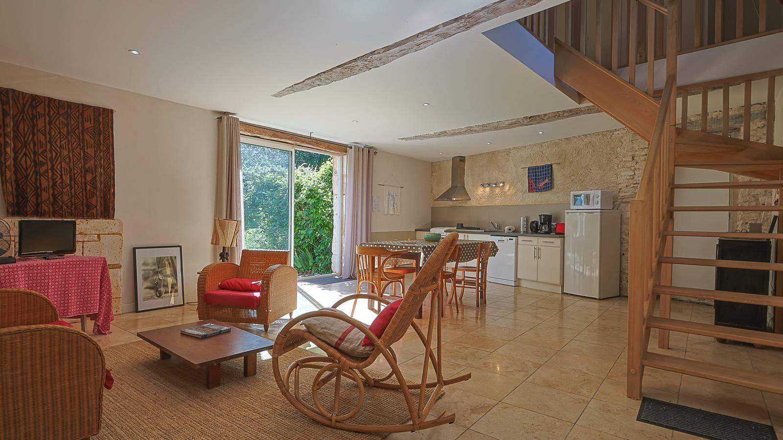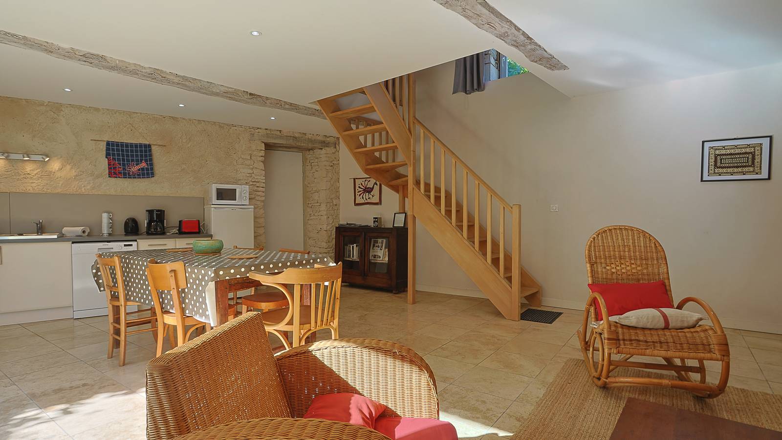 Customized gîte in a hamlet with several families, open all year, sleeps 4 (5 with extra crib), in the wing of a building: 2 bedrooms, fitted kitchen, dishwasher, bathroom, separate WC, large living room with wood-burning stove, parking. Garden, barbecue. A second adjoining furnished apartment is available.