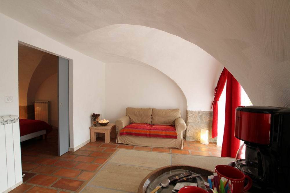 Gite la bergerie voutée is housed in part of the ground floor of a 17th-century sheepfold. It sleeps 2. It includes a fully-equipped kitchen, a bedroom with a 160cm bed, and a bathroom with a walk-in shower. It opens onto a large terrace with a view over the garden.