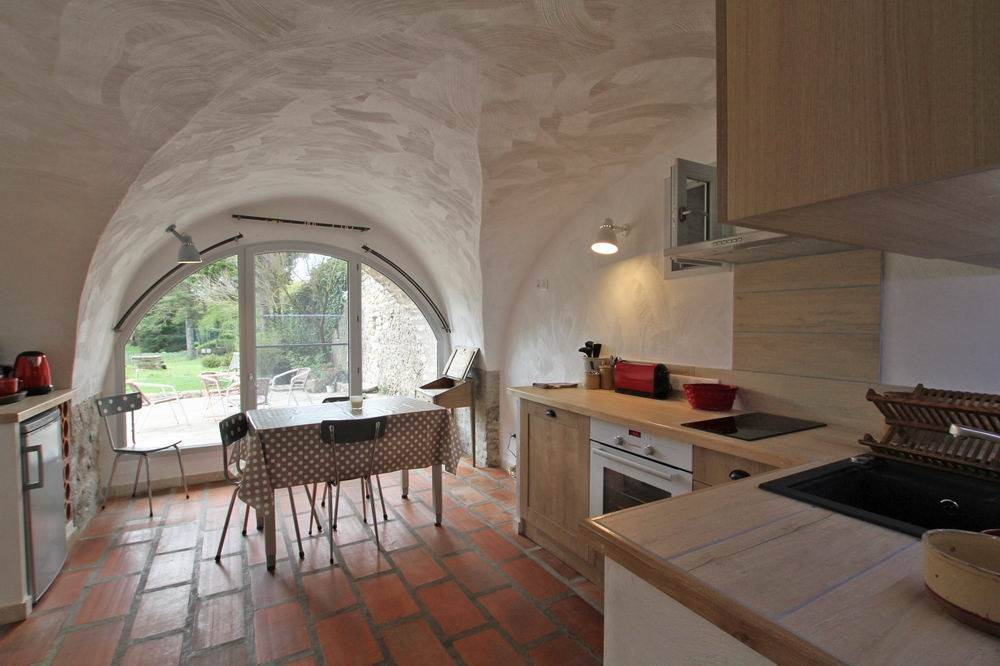 A renovated hayloft, stone vault, wood-burning stove and view of the vegetable garden.. a warm, comfortable atmosphere.