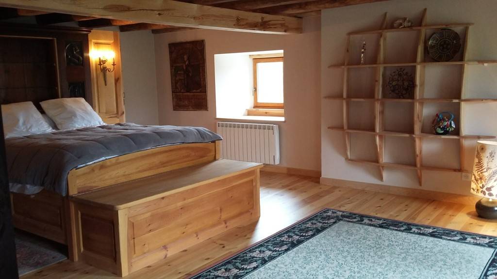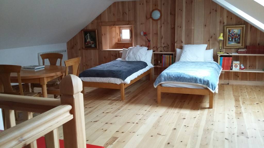 Gîte Sermilik d'une capacité de 4 personnes. Gîtes au calme dans un écrin de verdure avec vue sur les collines et forêts de la vallée. RDC avec terrasse donnant sur le jardin. Coin cuisine, salle de bain et toilettes, un lit double + 2 lits simples superposés.