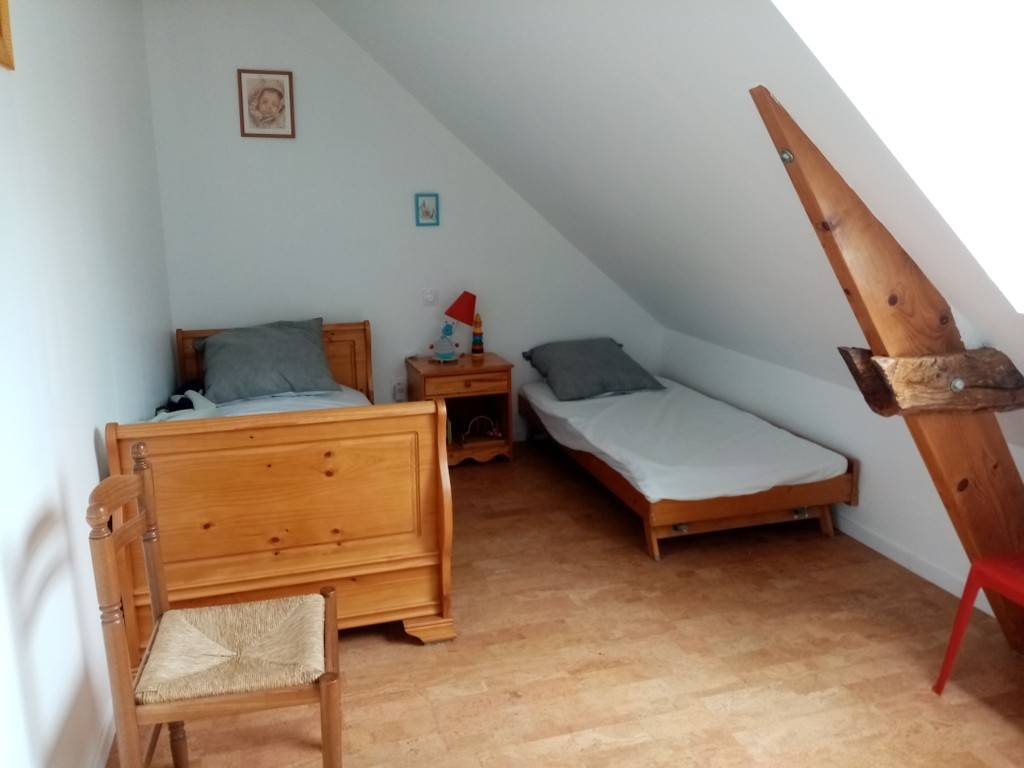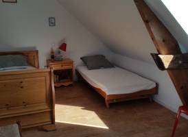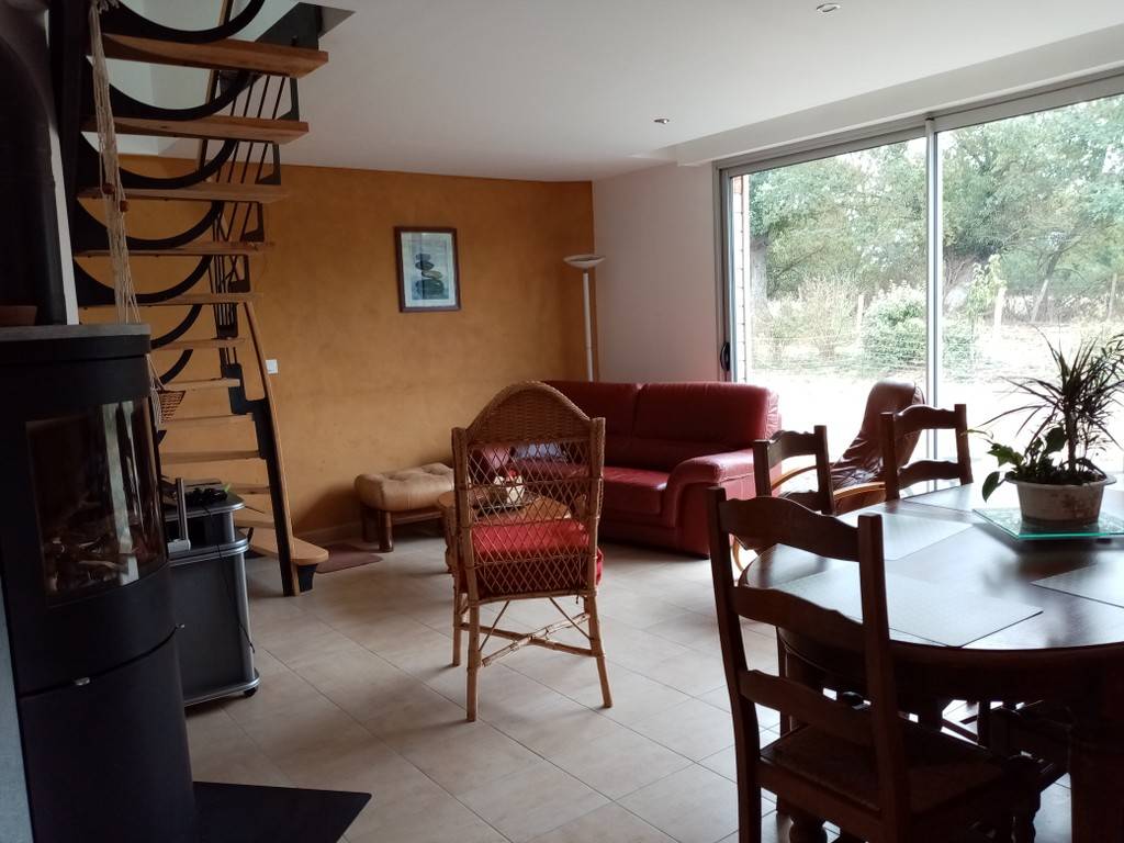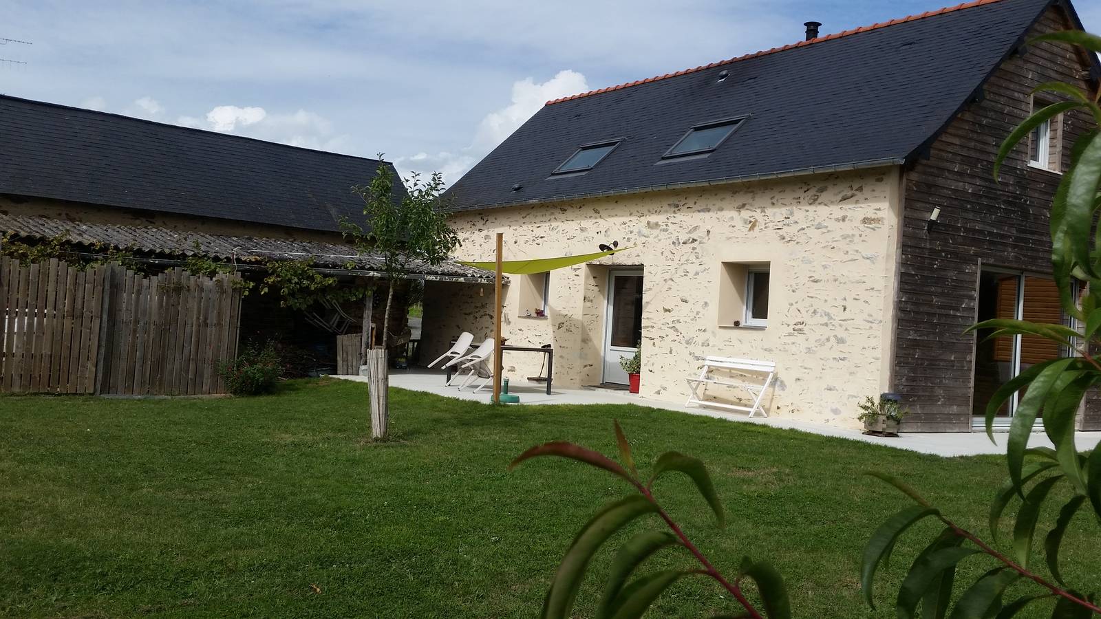 Le gîte des Rivières est l'ancienne remise d'une ferme au bord de la Mayenne et au milieu des champs. L’ancienne remise en pierres de 100 m² a été entièrement ré AU REZ-DE-CHAUSSEE : - Séjour de 25 m² - Cuisine équipée - 1 chambre avec 1 lit 140 - Salle d’eau avec douche à l’italienne, baignoire et siège bébé, lavabo PMR,toilettes sèches A L’ETAGE : - 1 chambre avec 1 lit 140, lit bébé - 2 chambres avec 2 lits 90 dont 1tiroir chacun, avec jeux pour enfants - Salle de bain/Wc à chasse d'eau