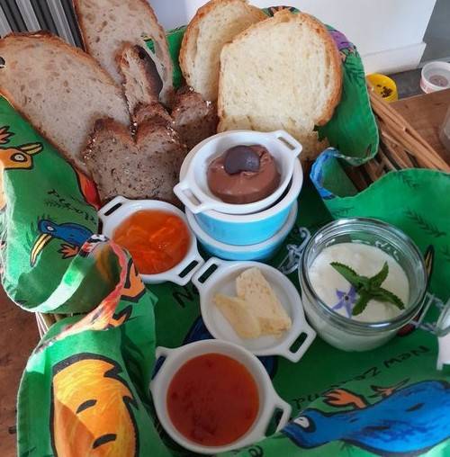 If you choose one of the breakfast options, you can choose the time at which it will be brought to you at La Tiny Kiwi. The time can be agreed up to 10pm the night before. Breakfast can still be booked up to noon the day before if not made at the time of booking. We must be informed of any food allergies at the time of booking.