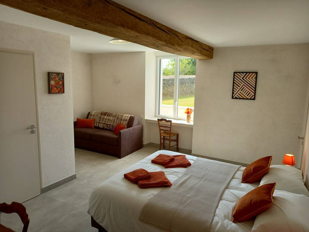 2-room guest room with panoramic terrace overlooking vineyards and hillsides of the Sèvre Nantaise river
