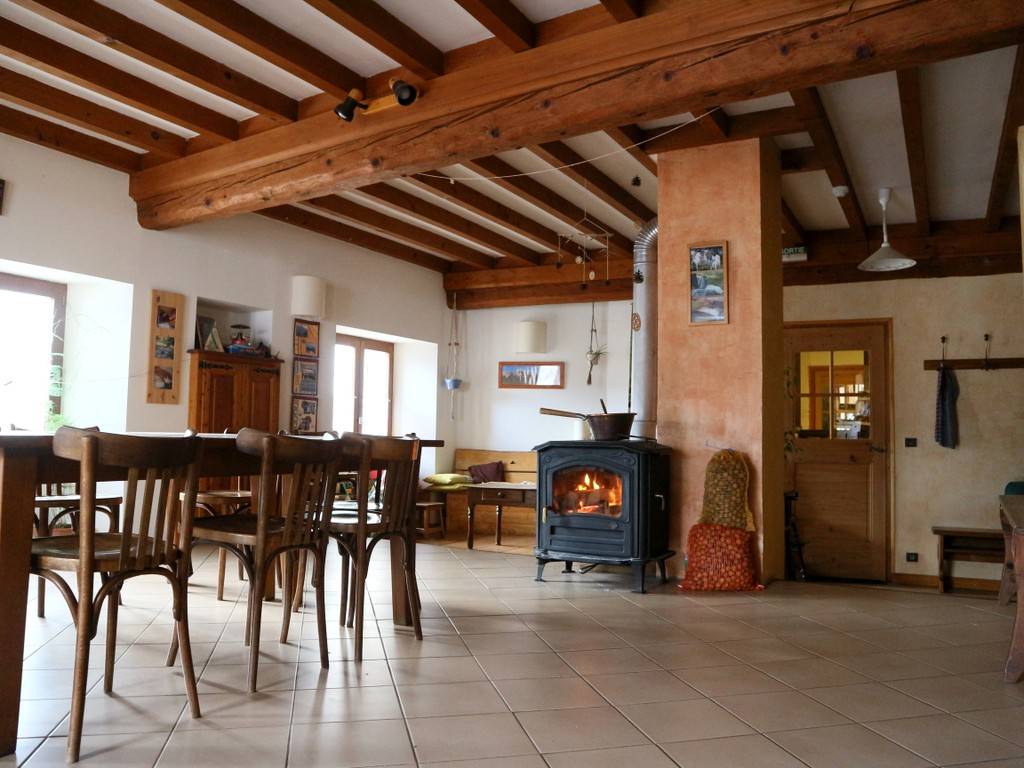 Alone, with family or friends, for an overnight stay or a longer stay, including evening meal, overnight stay and breakfast. Common room with children's corner, lounge/library, large terrace. Under the roof 5 bedrooms (10 people), shared sanitary facilities. Small traditional farm of 20ha; since 1986 we've been growing cereals and forage without fertilizers or pesticides to feed a few cows, a few goats and a farmyard. Enjoy cheese, vegetables and fruit from the garden at our table. Pets not allowed in the house. Picnic baskets on request.