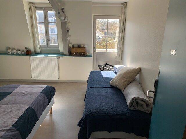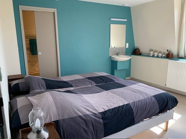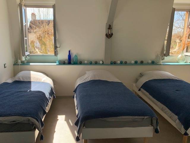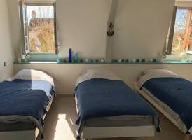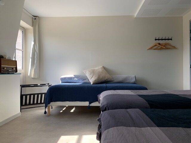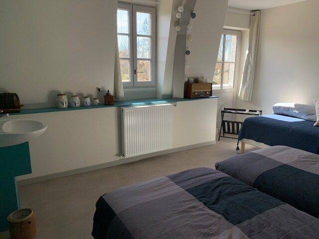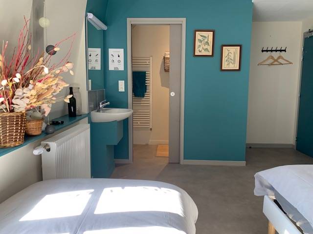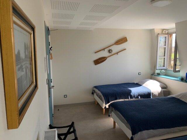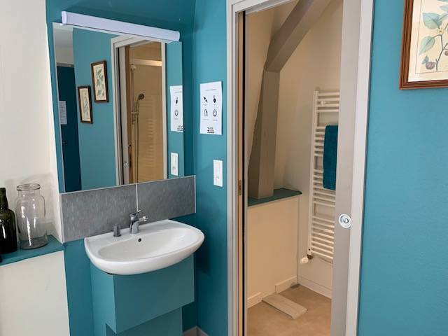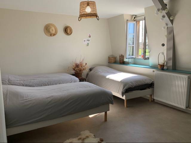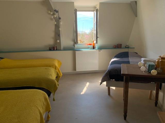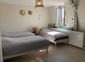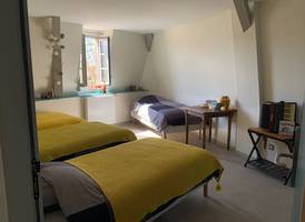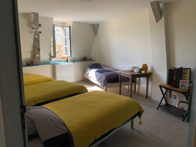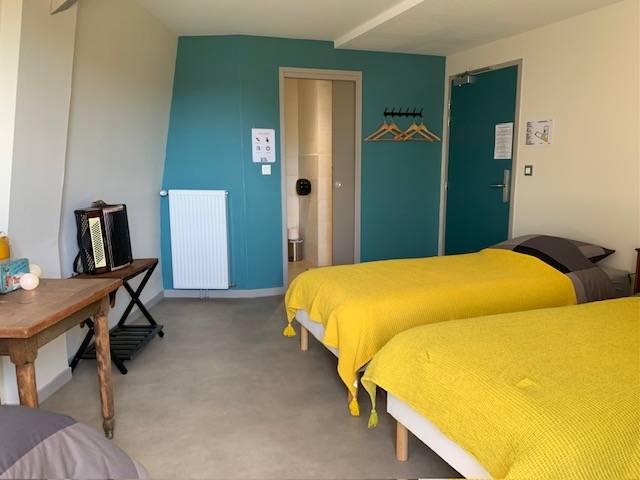 On site, you'll find a large vegetable garden and hop-growing area, a canteen and tea room, a local micro-brewery, and a local organic grocery store. Our gîte welcomes cyclists, hikers and visitors to stop over for one or more nights: - 3 rooms with 3 single beds; shower in each room, shared WC - 1 room with 4 single beds, with private shower and WC A convivial area shared between the 4 rooms, with kitchenette.