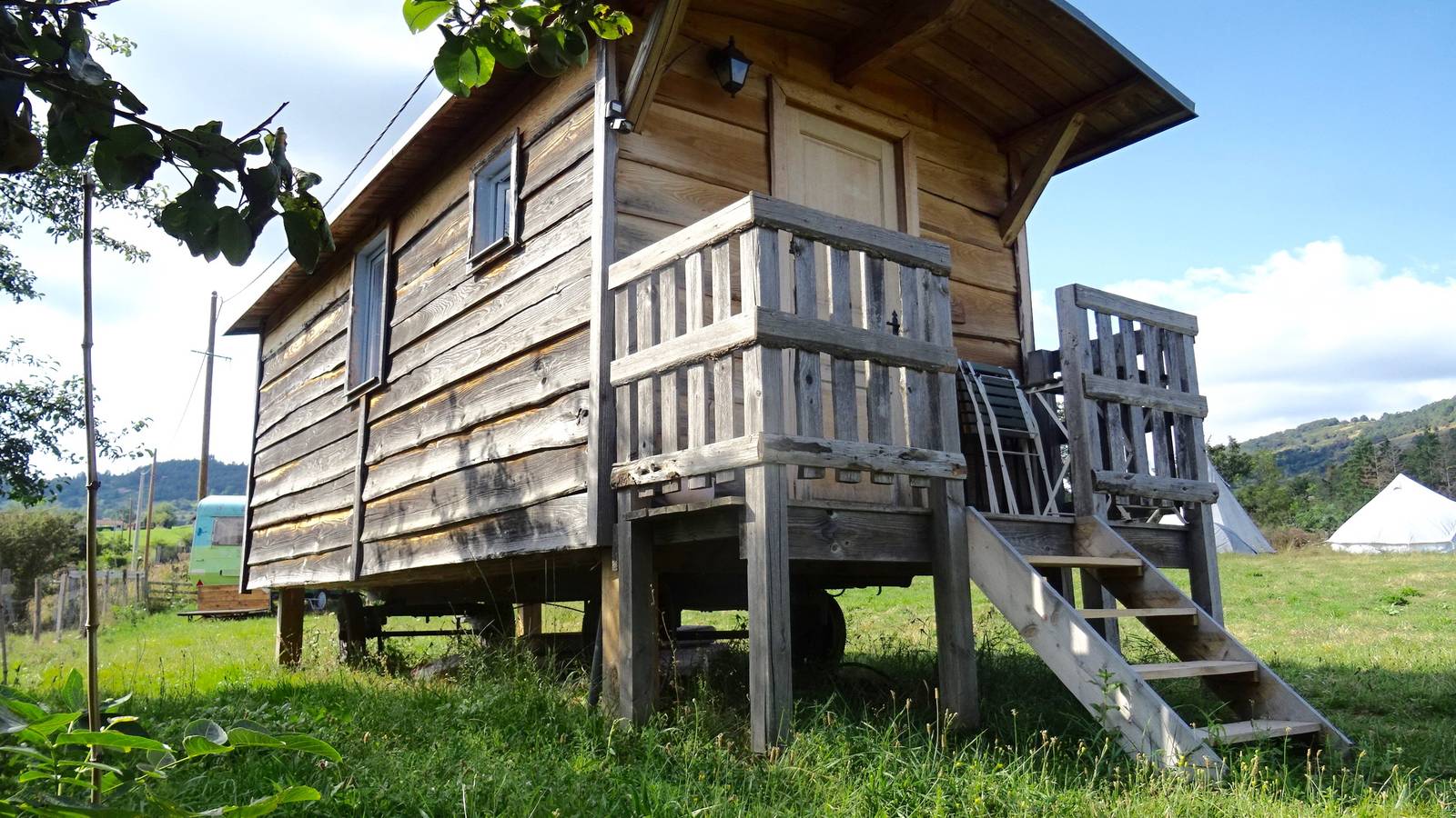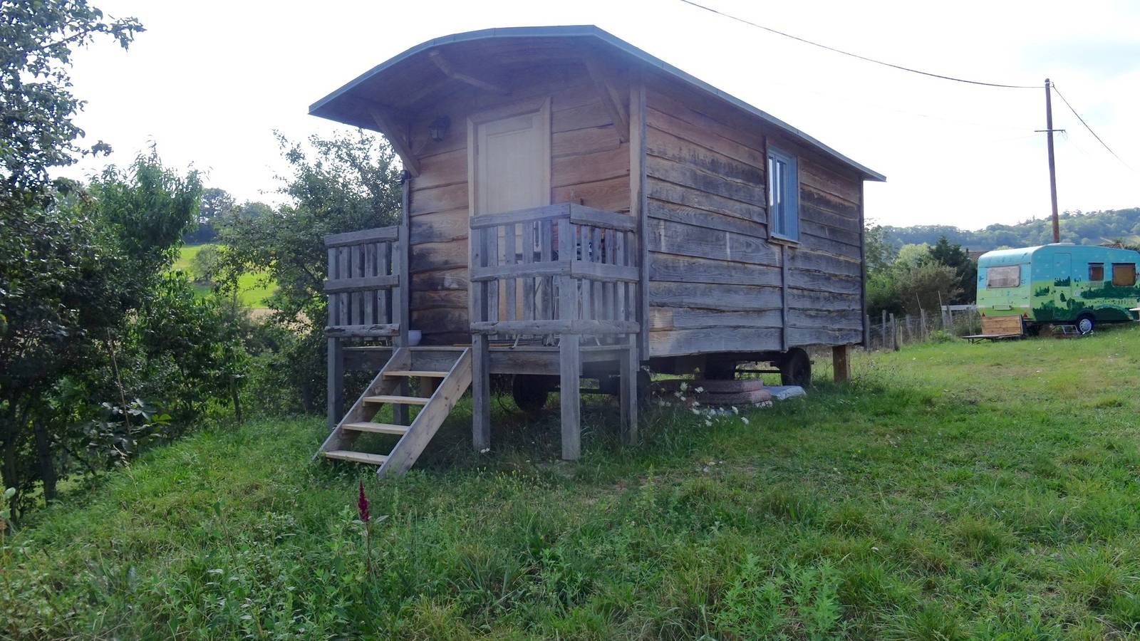 The roulotte is set in a large meadow in the middle of nature.