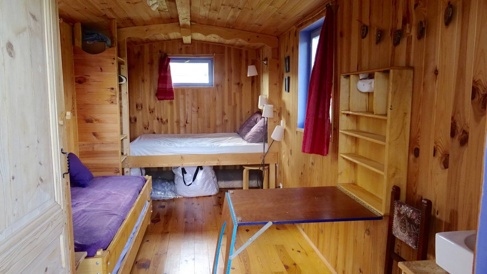 Old caravan refurbished and lined with wood inside. Plenty of storage space.