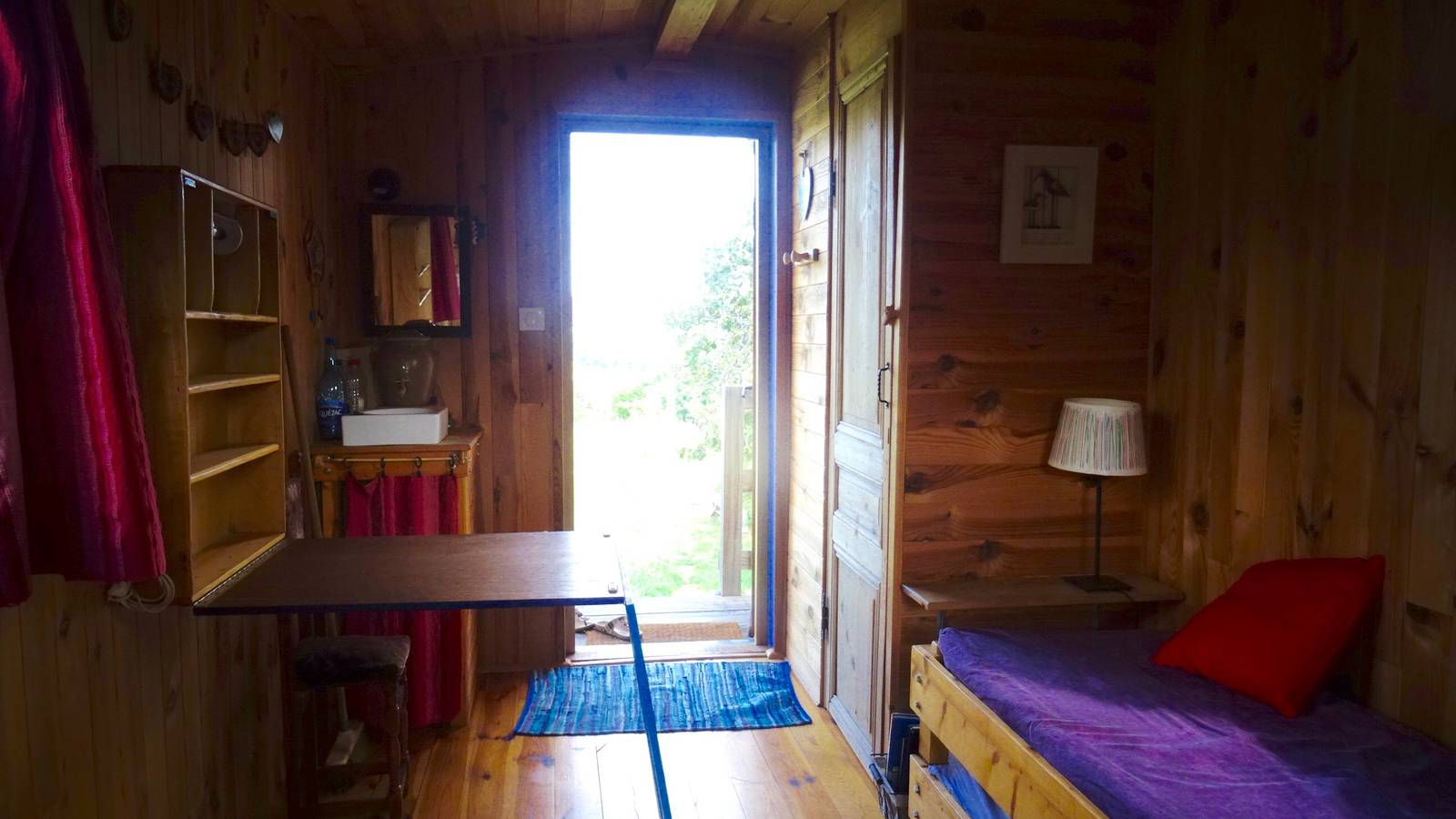All-wood trailer, insulated and furnished with natural materials.