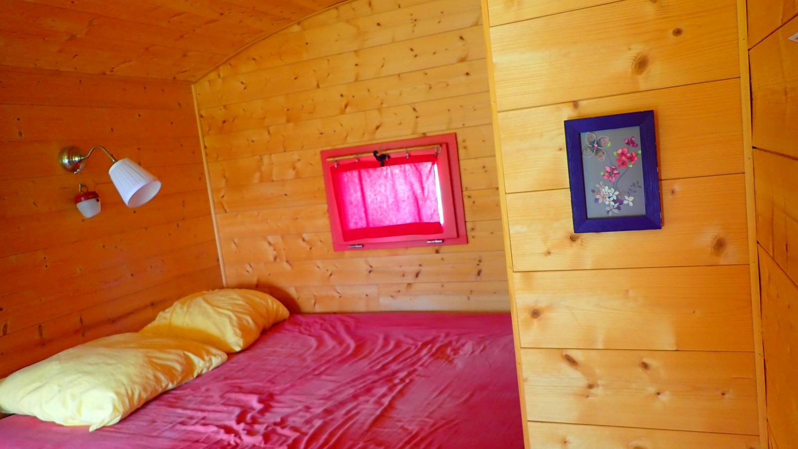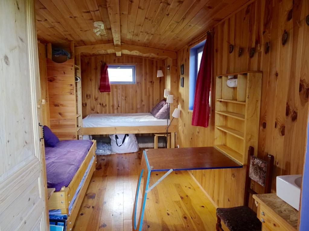 All-wood trailer, insulated and furnished with natural materials.