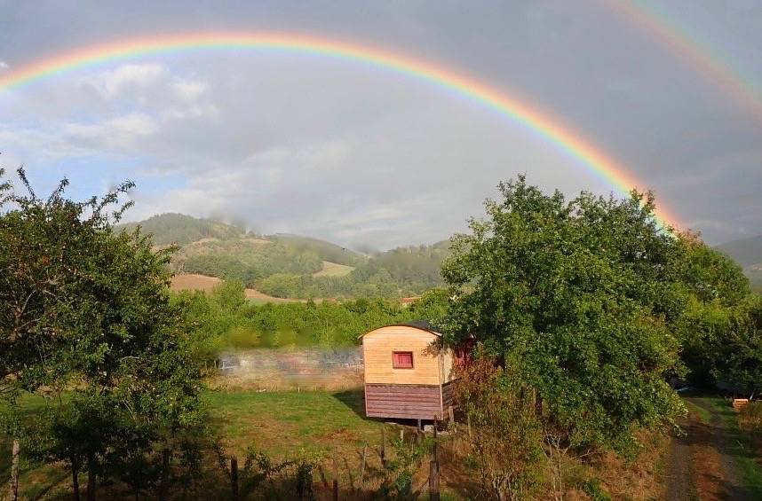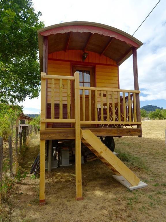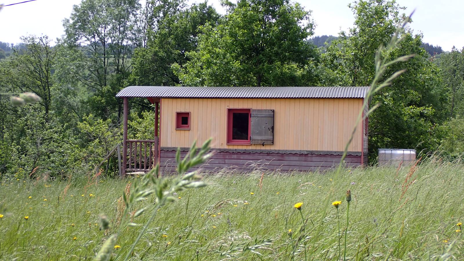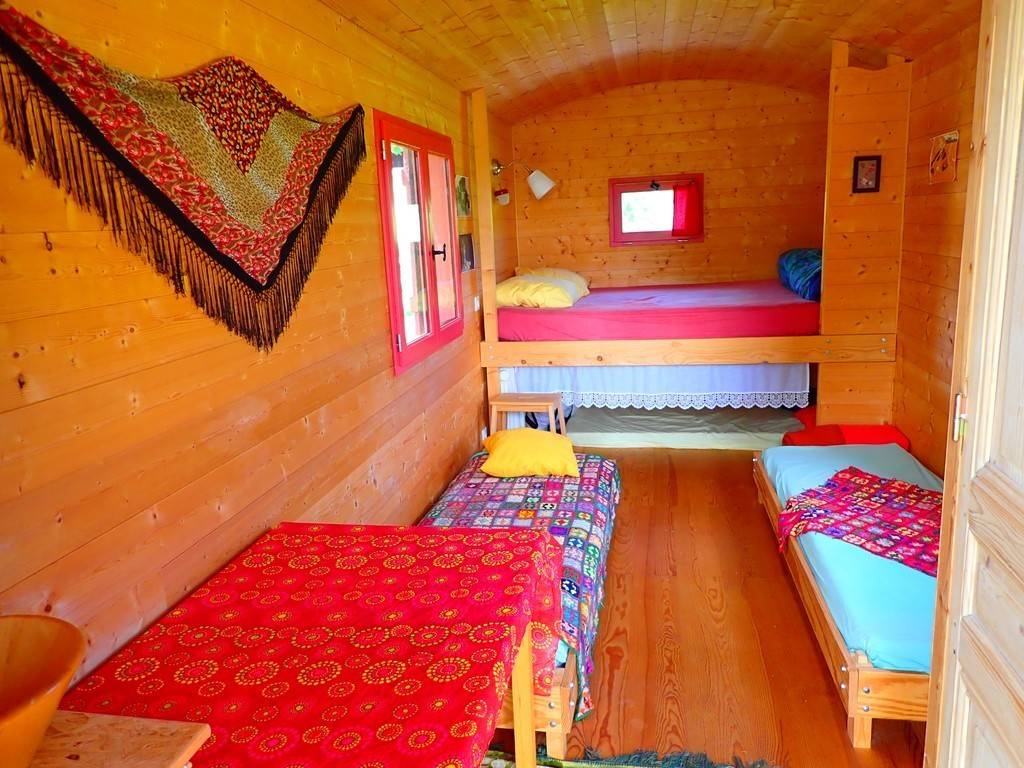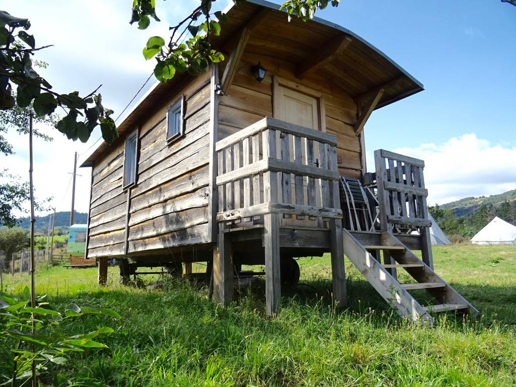 The roulotte is set in a large meadow in the middle of nature.