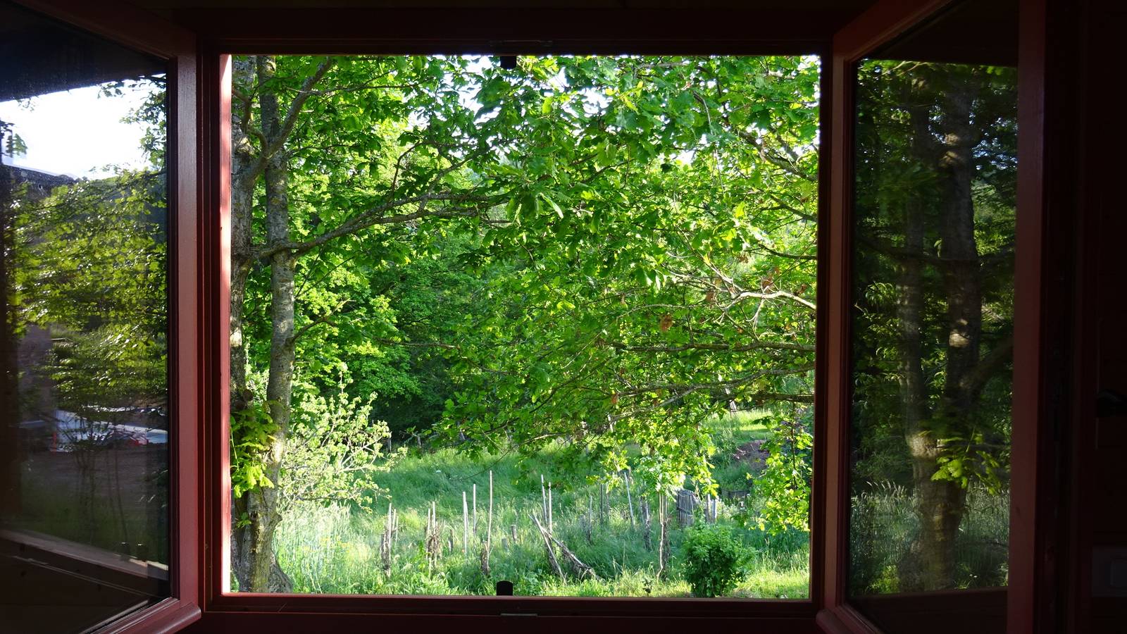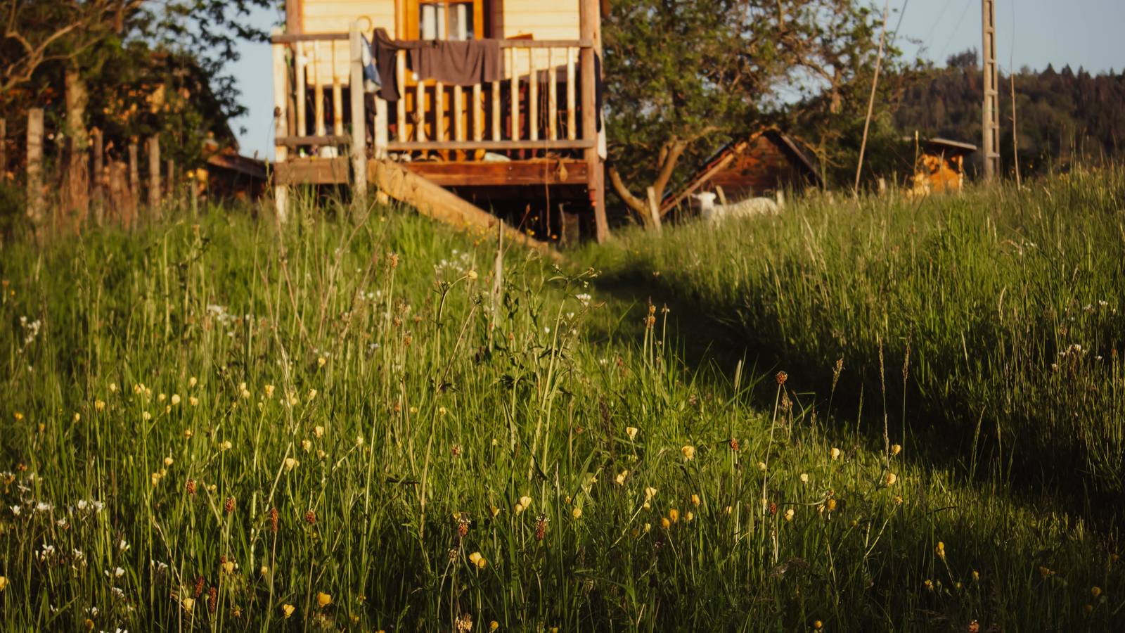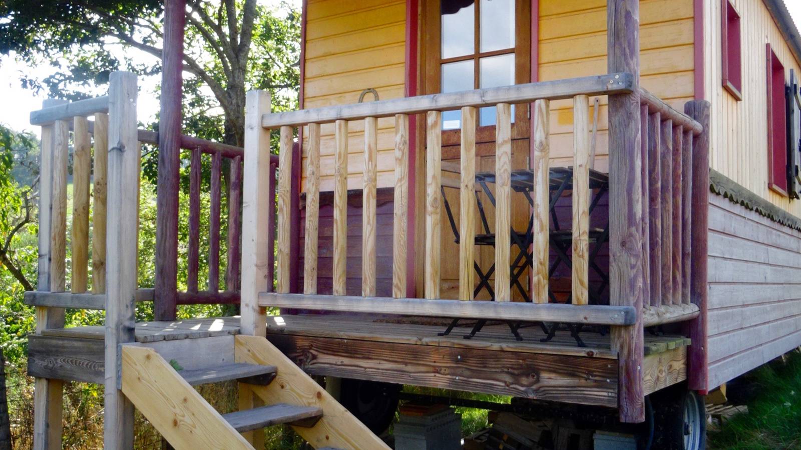 The roulotte is set in a large meadow in the middle of nature.