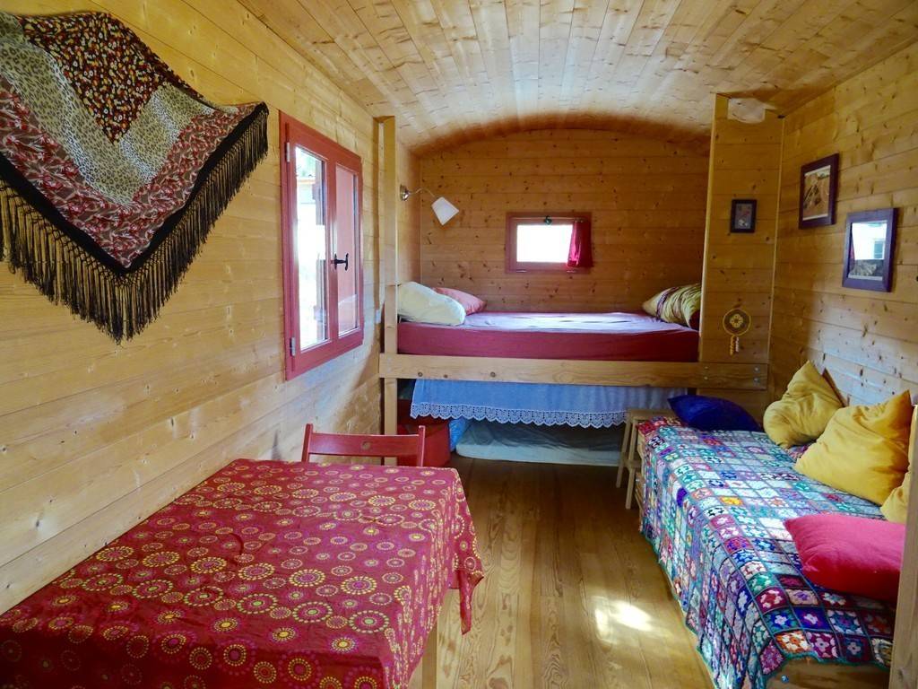 All-wood caravans, insulated and furnished with natural materials.
