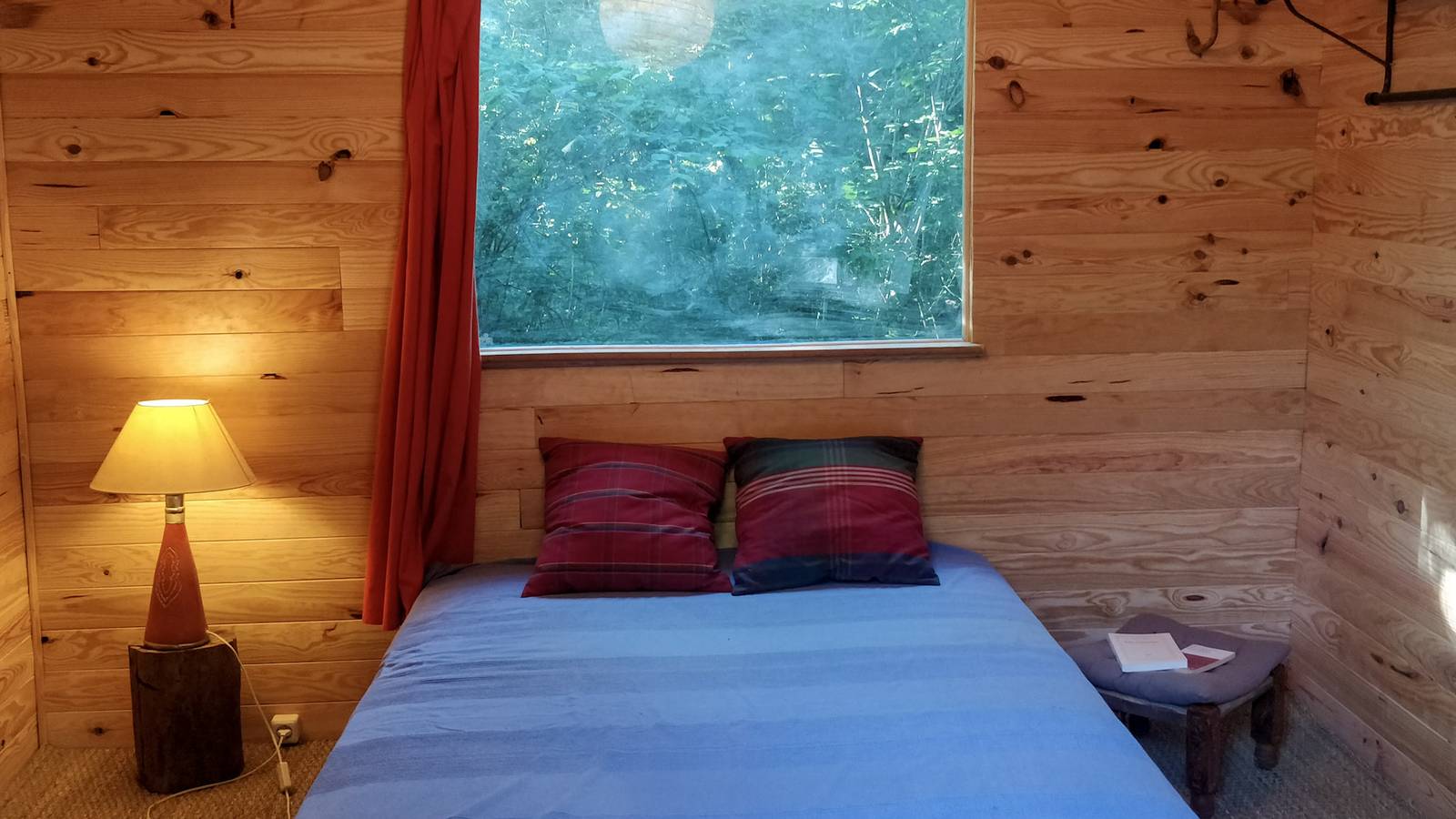 To welcome you, I've set up a 6-site campsite on two hectares of land. In keeping with my commitment to ecology, I've built a wooden structure with a solar shower, toilet cubicle, dry toilets and phytodepuration. On the terrace of the sanitary block, you'll find a lunch area with tables, gas stove and fridge.