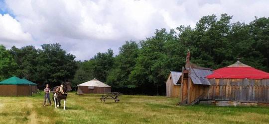 camping à la ferme avec des hébergements insolites, yourtes, roulotte, chalets, caravane...balade à dos d'âne, animaux..