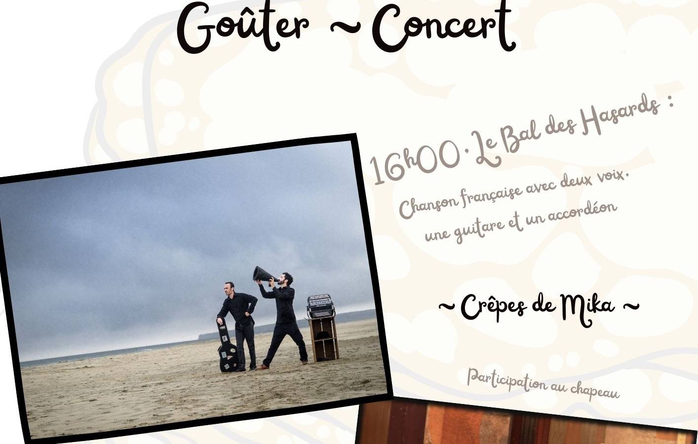 From February to December, the café hosts around 2 events a month: games evenings in partnership with a village association, concerts, cinema, exhibitions, etc. More info on our facebook page: https://www.facebook.com/profile.php?id=61563132692680