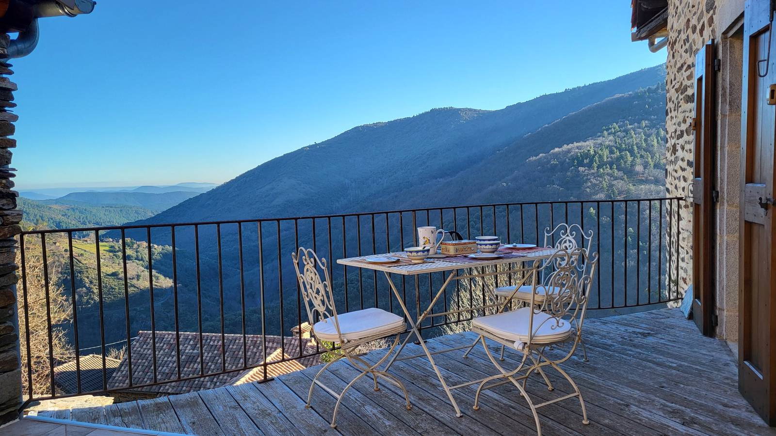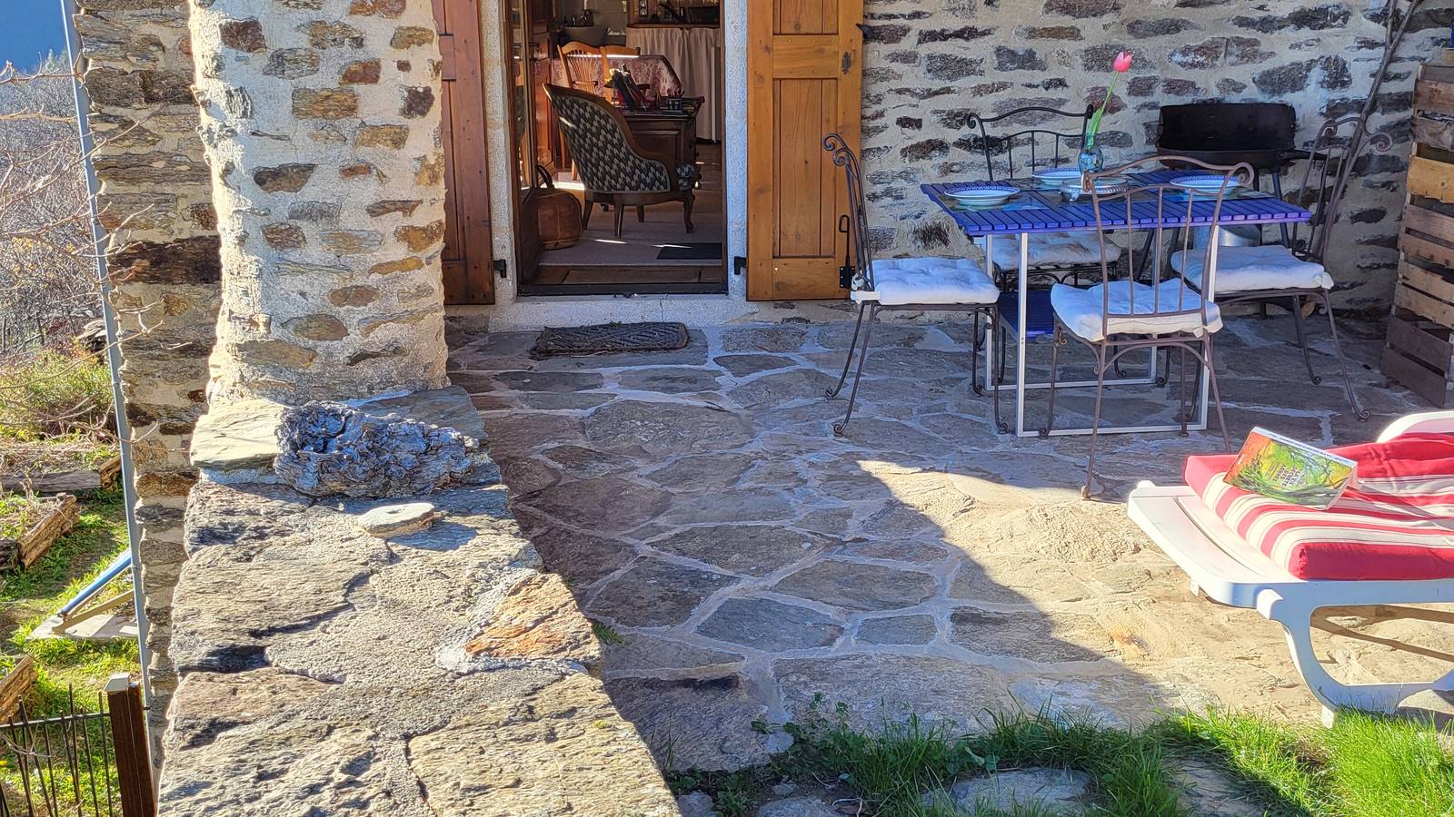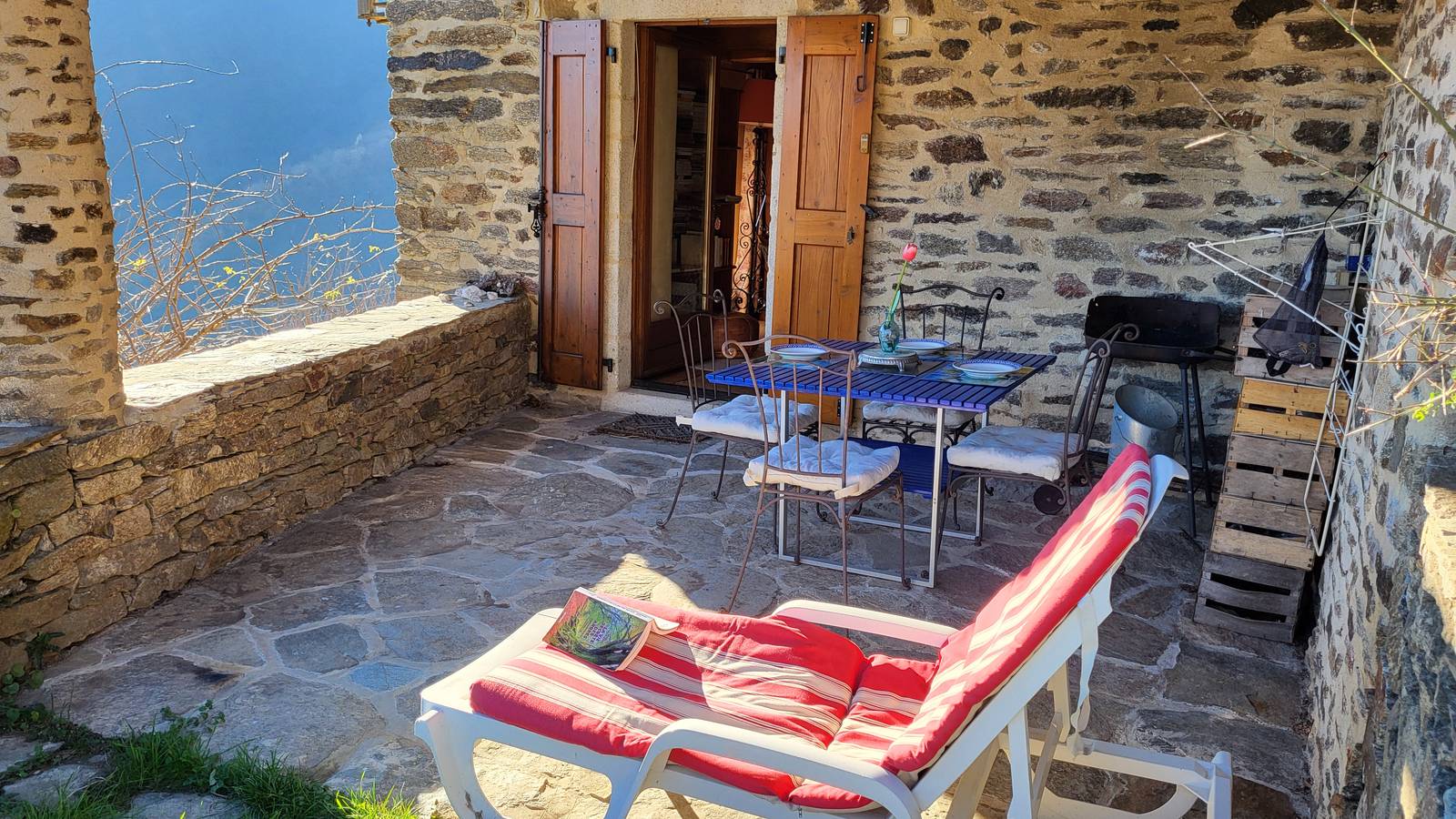 La Grange is a self-contained gîte with mezzanine and adjoining terrace on the east side, overlooking the valley and river.