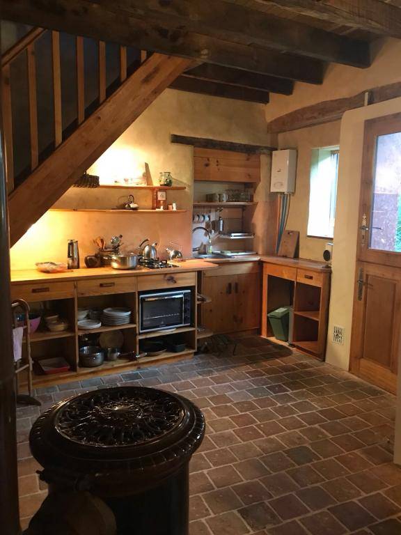 We rent for a minimum of 3 nights (144€). On the side of a valley, in the shade of tall trees, Agnès & Rémi, retired, welcome you. Fontenelle covers 2 ha. You'll come across a few beehives and many birds; several ponds, a garden and fruit trees. You'll be staying close to our house, in a gite restored with healthy, natural materials. Ground floor: living room with fitted kitchen, shower room with toilet. Upstairs, an attic bedroom with a 160cm bed (2x80cm), and either an extra 80cm bed, or a small folding bed for a baby up to 2 years old.