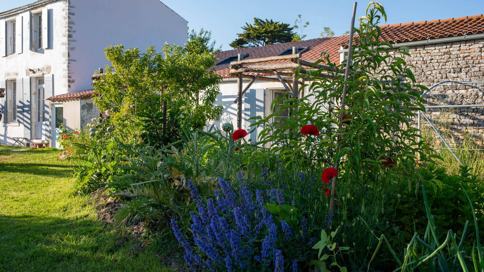 Our farm used to produce wine and oysters. We bought it in 2019, and started a new era : we are renovating every building to create 3 independant lodgings, our house, a workshop and a greenhouse. Our place is 2700m2. We are creating a permacultural garden and orchad that is meant to be productive, autonomous and resilient.