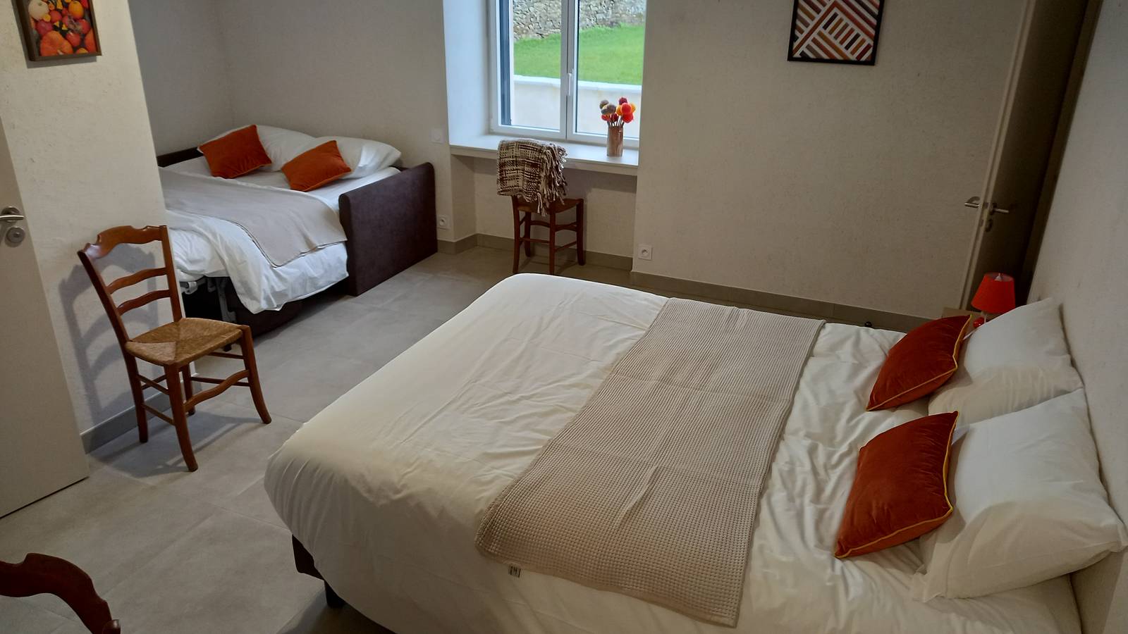 Retired dairy farmer on 80 ha, with a herd of 60 dairy cows. The farm is oriented towards grass production with dynamic rotational grazing. The hillsides along the Evre river are home to the heifers. Our gite has 4 en-suite bedrooms, a large living room for family and friends, a games room (wooden games for young and old) and solar panels. The enclosed garden lets you enjoy the fresh country air.