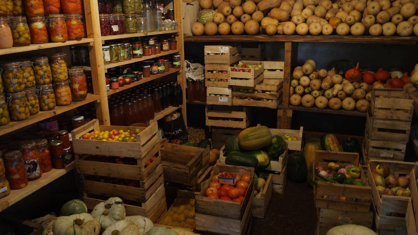 The living room-kitchen is shared, as are the sanitary facilities, which are used and cared for by everyone on the farm.