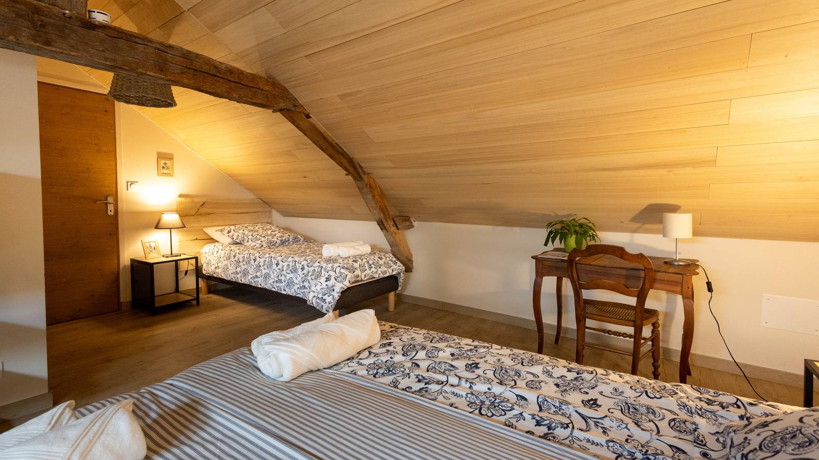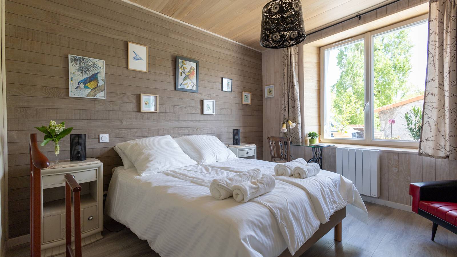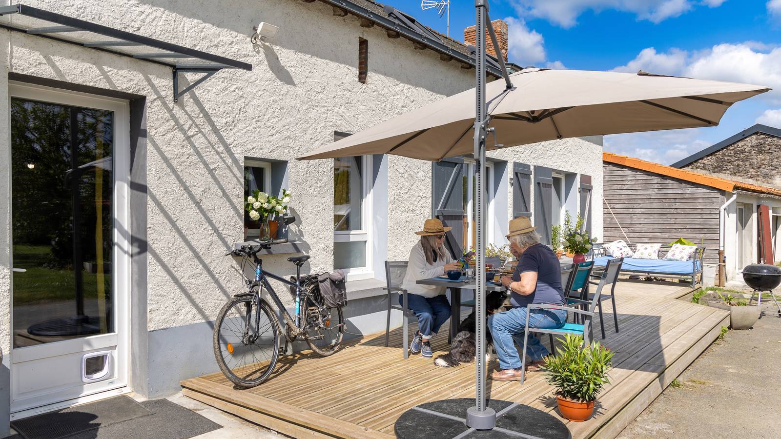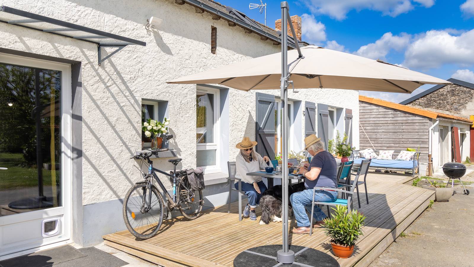 Former goatherds and cheesemakers, we gave up our farm to settle in Les Reinières, with a project for a new home. We now raise Normandy oxen on an island in the Loire, near Ingrandes. We started with 7 steers. They are raised on free-range grass on the 50-hectare island. We've set up a large vegetable garden that will enable us to prepare meals for the table d'hôtes, and Franck is committed to working it with animal traction. We offer three guest rooms, one with private bathroom and toilet.