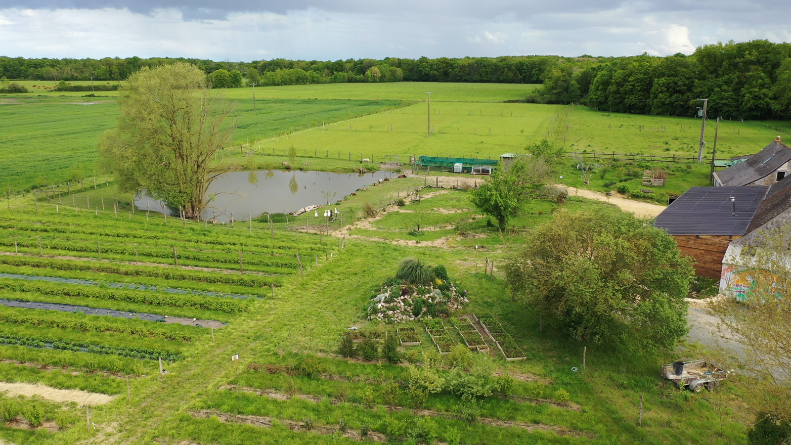 We are farmers and offer several types of accommodation: - a gîte (opening June 2025), for 10/12 people with 4 bedrooms including one for disabled people - a camping site for 6 people with access to an outdoor bathroom, toilet, communal kitchen - open house events with catering Our originality lies in the balance between the diversity of activities on site: organic market gardening, nursery, berries, jams, some fifteen hobby animals; and the environment (forest accessible from the gîte and camping site, pond...). We cultivate 2 hectares, keeping the rest for more creative projects (forest gardens, etc.).