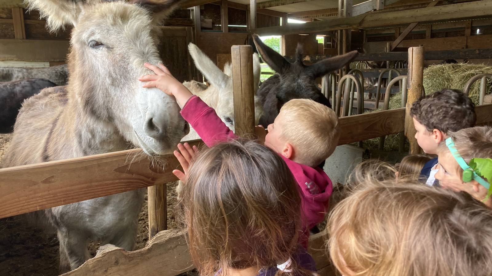 Au sein de la ferme vit un troupeau d'une quinzaine d'ânes, qui se prêtent volontiers aux différentes activités proposées.