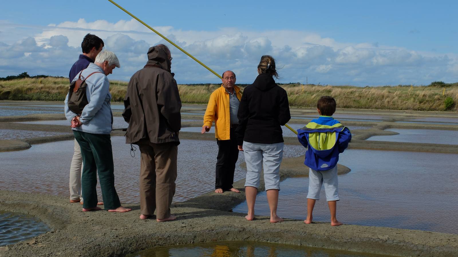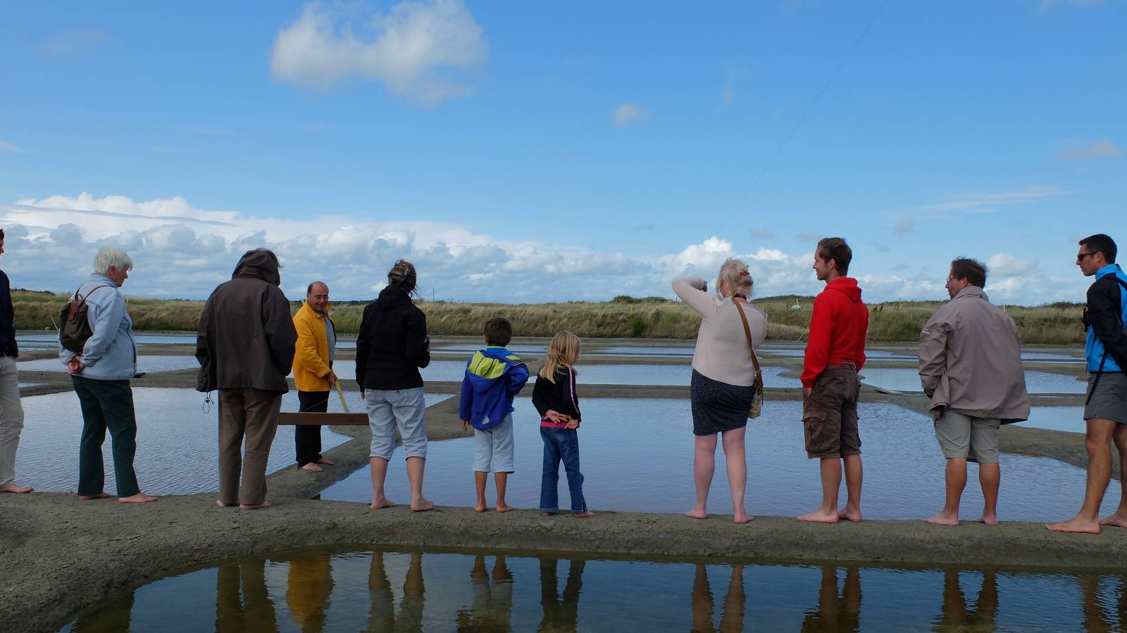 Nous proposons une promenade d'à peu près trois kilomètres pendant laquelle les participants découvrent le milieu des marais salants. Ils découvrent le travail du paludier et la technique de la production de sel de mer.