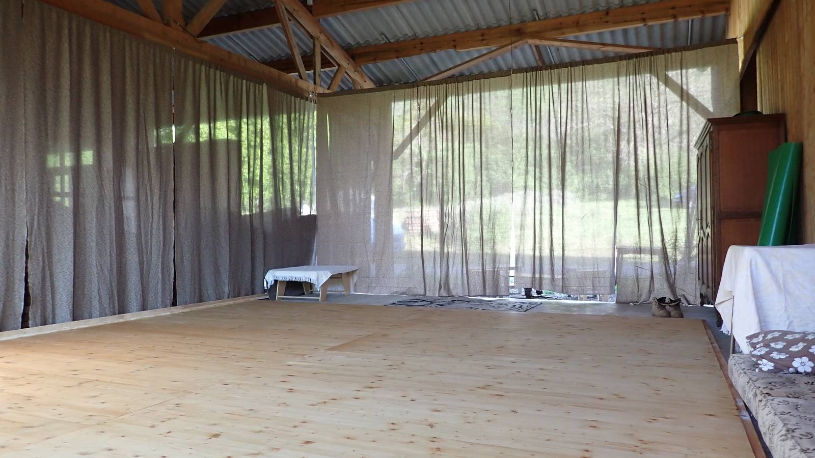 30 m2 idéal pour un stage, une rencontre, un lieu d'accueil d'une troupe artistique qui souhaite crere , s'exercer en danse , musique théatre... Les différents lieux d'hebergements sur la ferme (camping, gite , tinys) permettent d'envisager un séjour accessible pour différents types de budgets.
