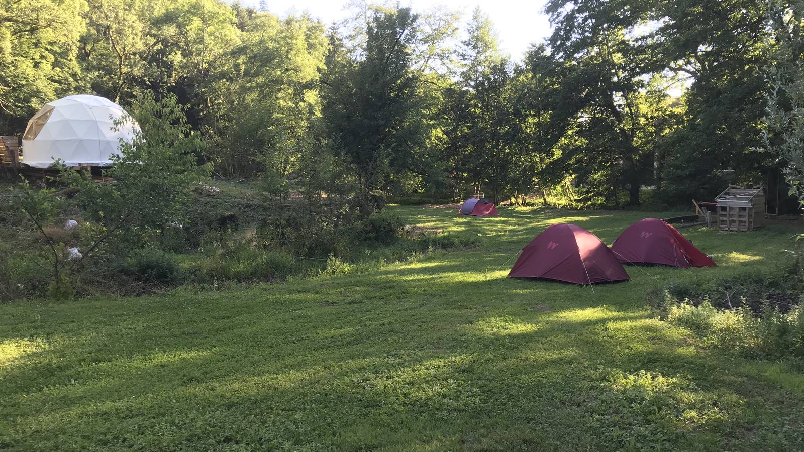 Entre le ruisseau et les parcs à escargots, choisissez dans le champ où installer votre toile : à la fraîcheur du cour d’eau, à l’ombre d’un sureau, bien placé pour profitez des rayons du soleil, ou dans un petit coin en toute tranquilité.