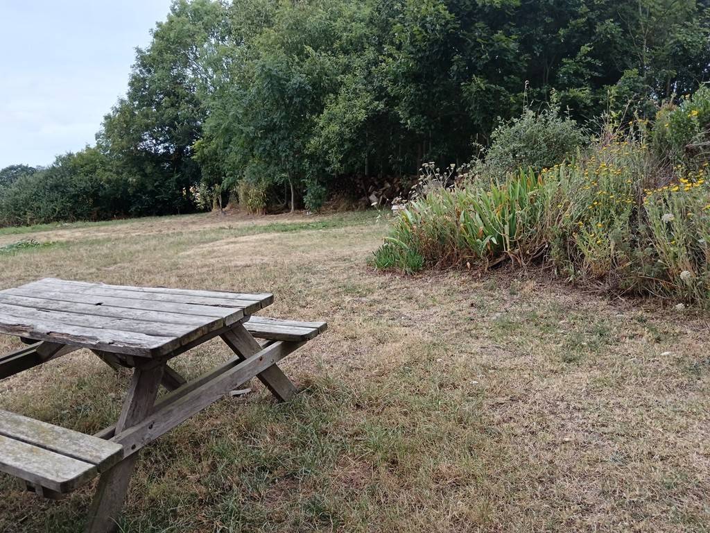 Cuisine d’été, espace pique-nique avec tables forestières, douche à l’italienne, toilettes sèches.
