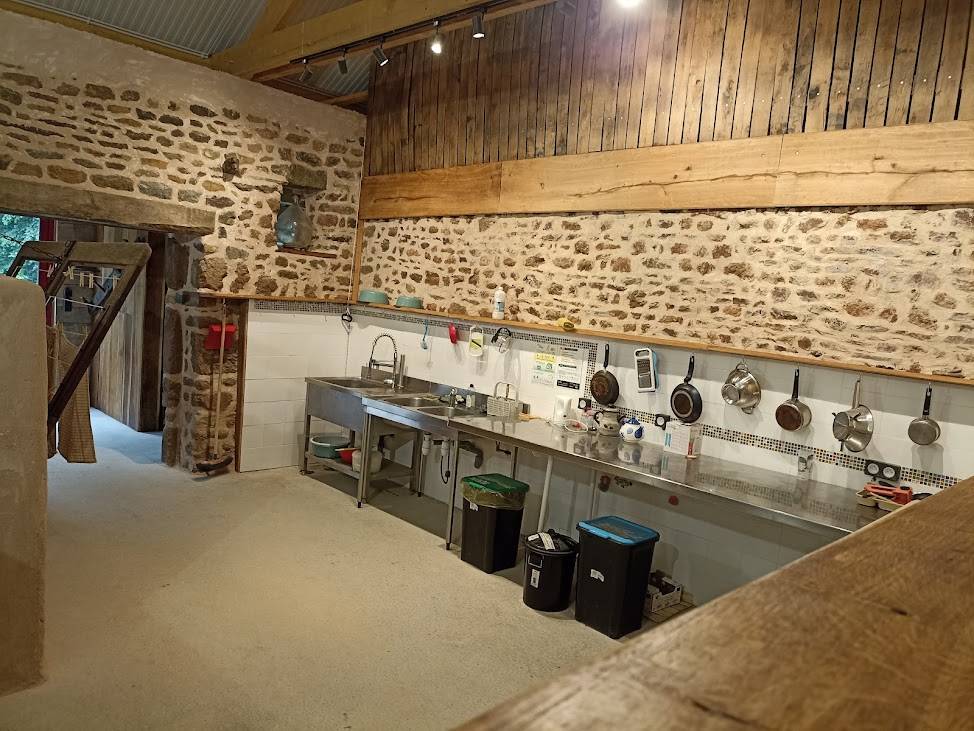 Depuis 2025 l'abricool vous est réservé durant toute la saison d'ouverture du camping. c'est un grand bâtiment en pierre, doublé en chaux et paille, lumineux. Ce bâtiment c'est un espace bibliothéque, un coin repas, une cuisine, une terrasse, une grande étente à linge, un abri pour les vélos, ou pour attacher les chevaux, un petit atelier à votre disposition pour les réparations vélo. Et si l'envie de barbecu surgit pas de soucis, nous avons tout ce qu'il vous faut. Tentez aussi la cuisson au four solaire, ça marche oui même en Normandie!