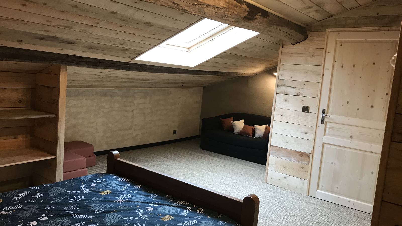 Cette chambre mansardée vous permettra de profiter d’un séjour à la ferme tout en bénéficiant d’un confort chaleureux.