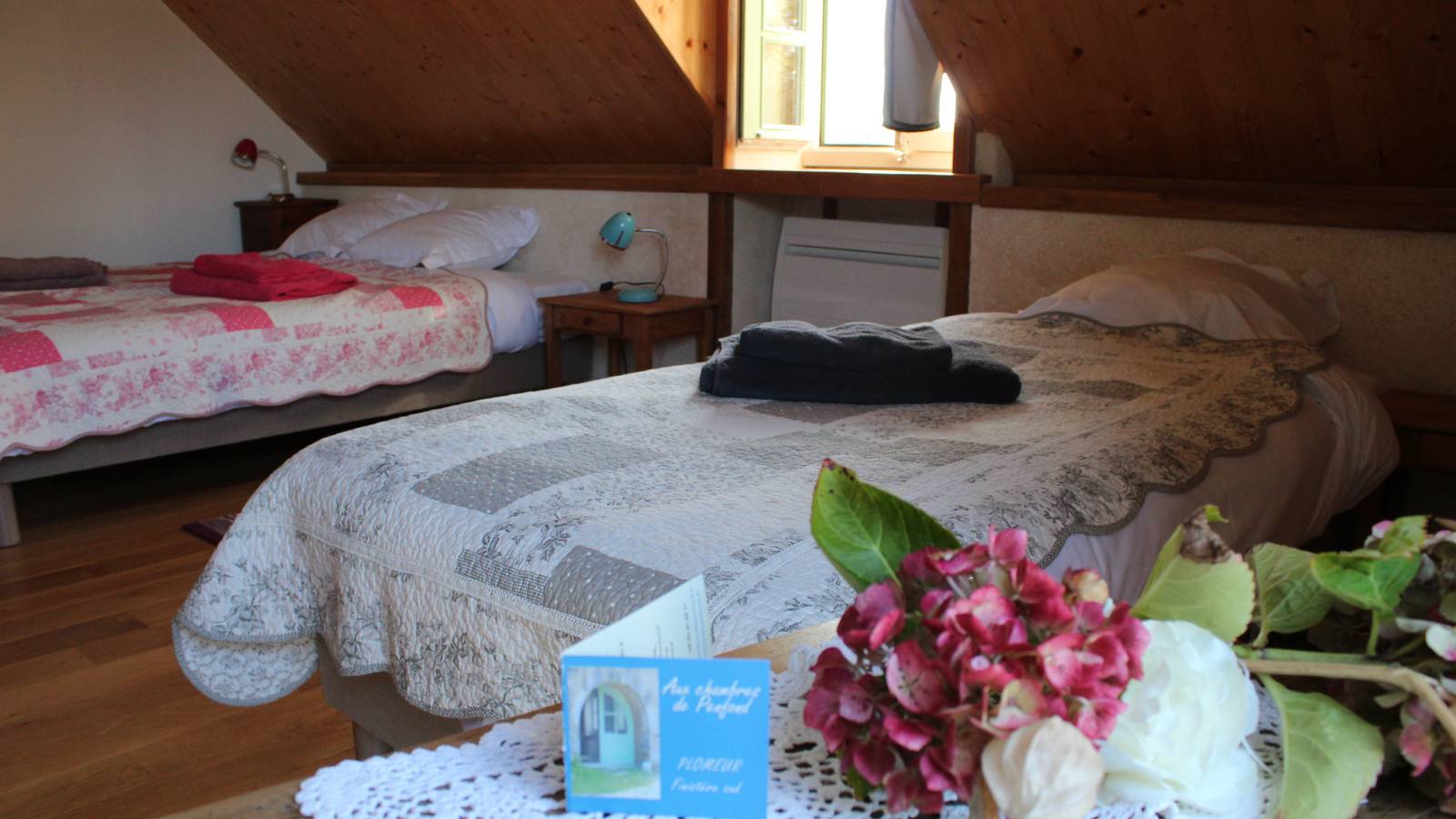 Avec trois lits une place, dont deux pouvant être jumelés, elle peut héberger un couple avec un enfant, un famille monoparentale ou trois enfants, car elle est mitoyenne avec la chambre "ar cheminal".