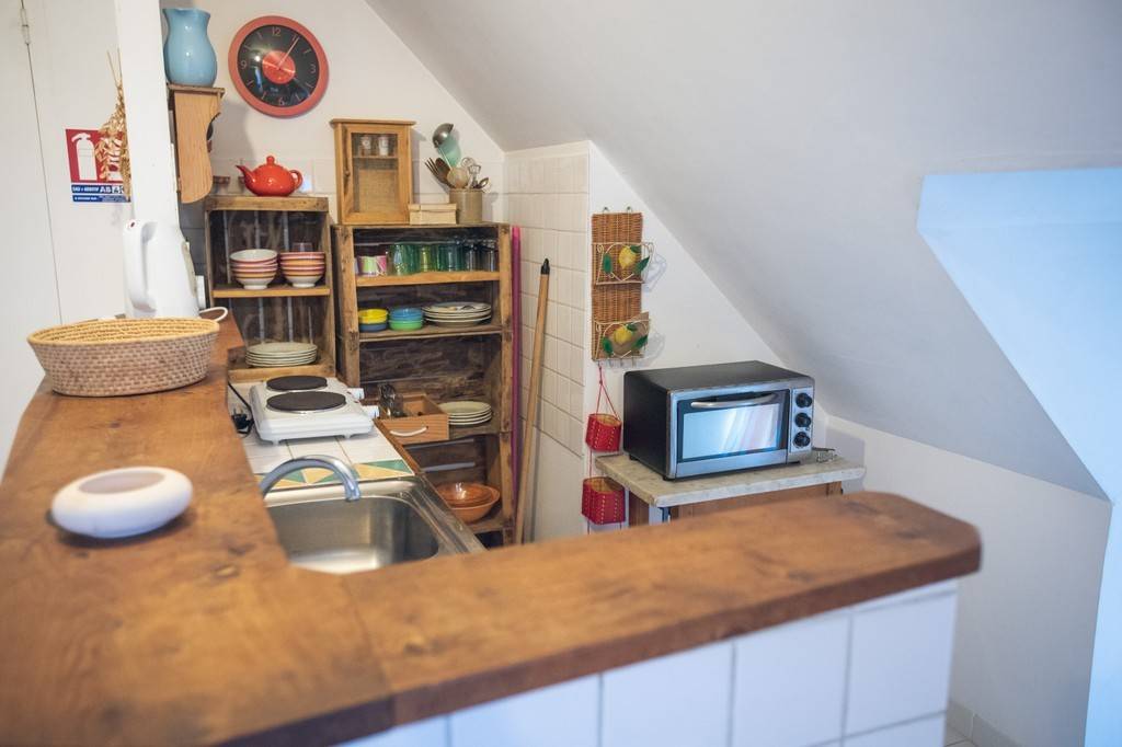 L'appartement se compose d'une chambre 2 personnes, d'une chambre de 3 personnes ouverte sur le salon, kitchenette, salle de bain, toilettes indépendantes.