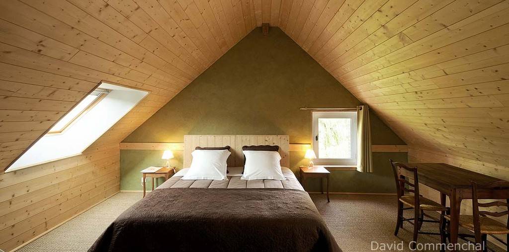 Chambre mansardé, à l'étage. Confort du bois et de l'argile.