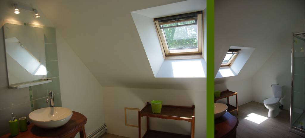 Chambre mansardé, à l'étage. Grand lit 180. Salle de douche et toilette privative.
