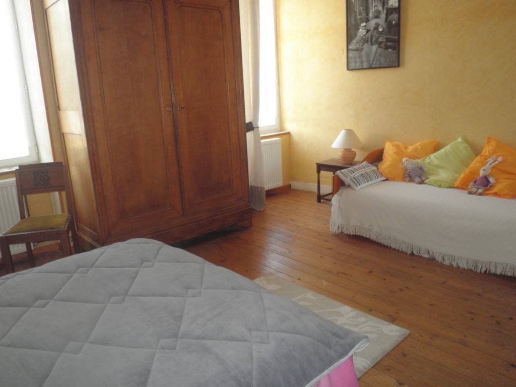 Chambre spacieuse située au 1er étage, avec lit 140 et lit d'appoint 90 pour enfant. Rez de chaussée aménagé pour petits déjeuners, équipé d'un frigo, d'un micro-ondes et de vaisselle.