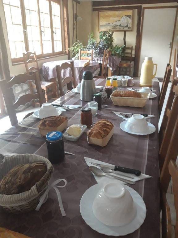 Nous sommes des agriculteurs retraités Les hôtes, que nous accueillons en chambres d'hôtes avec sanitaire individuel complet peuvent disposer d'une cuisine commune afin de préparer un petit repas.Une salle en colombages entièrement restaurée est à leur disposition.Nous y servons les petits déjeuners faits essentiellement avec les produits de la ferme et du jardin.