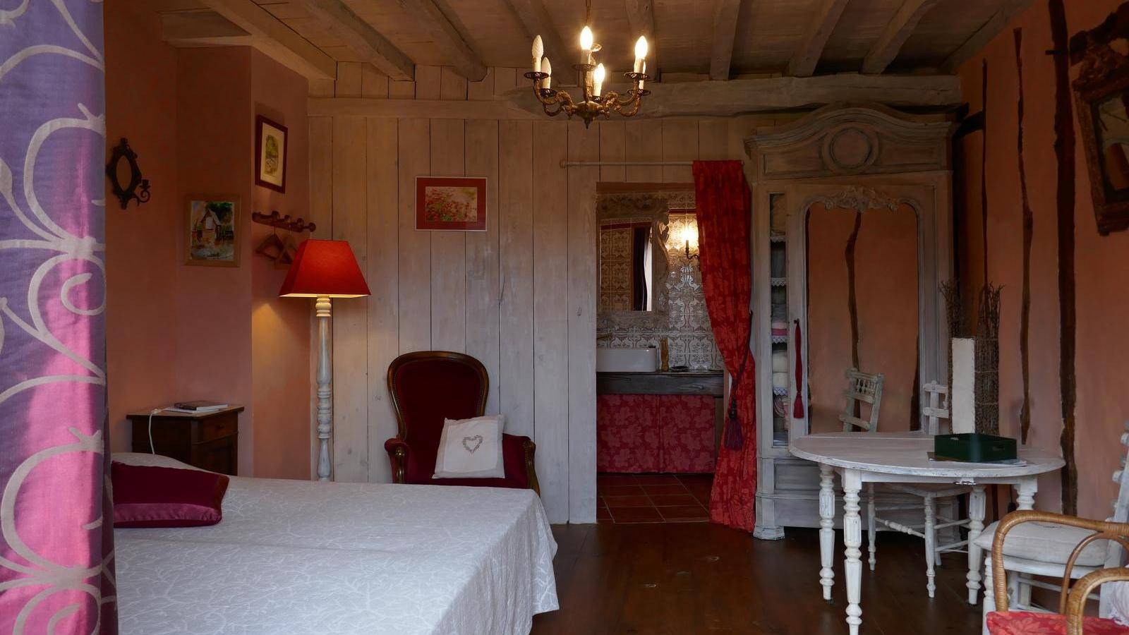 Coquette et douillette, la chambre Aquilégia a le charme de l'ancien. Vous y serez au calme.