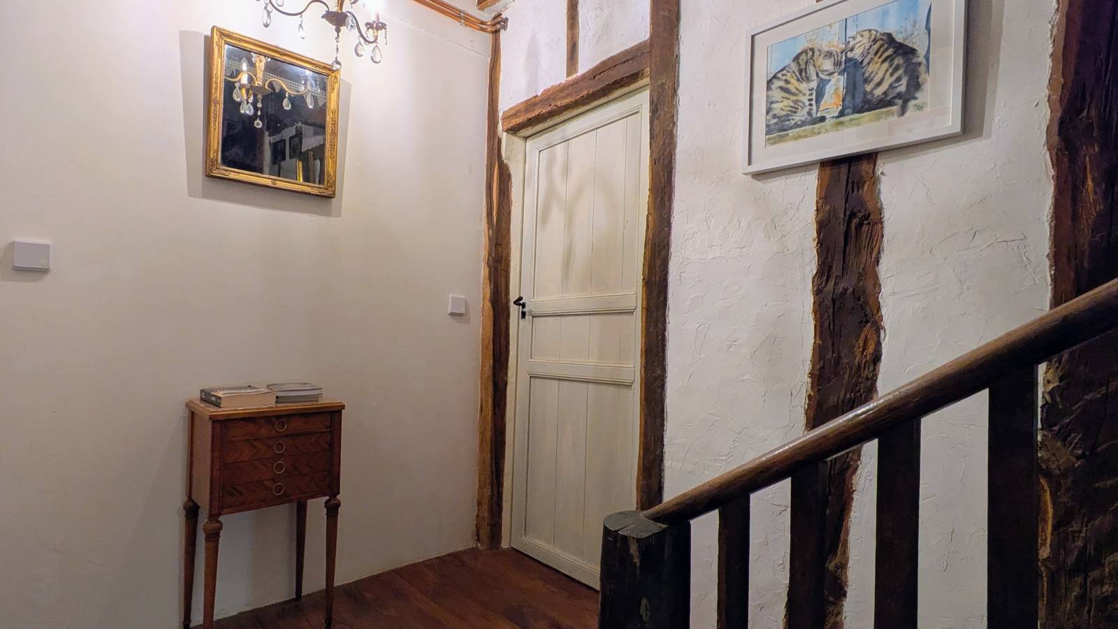 Une chambre spacieuse au charme ancien avec une salle de bains surprenante à l'étage de la chambre.