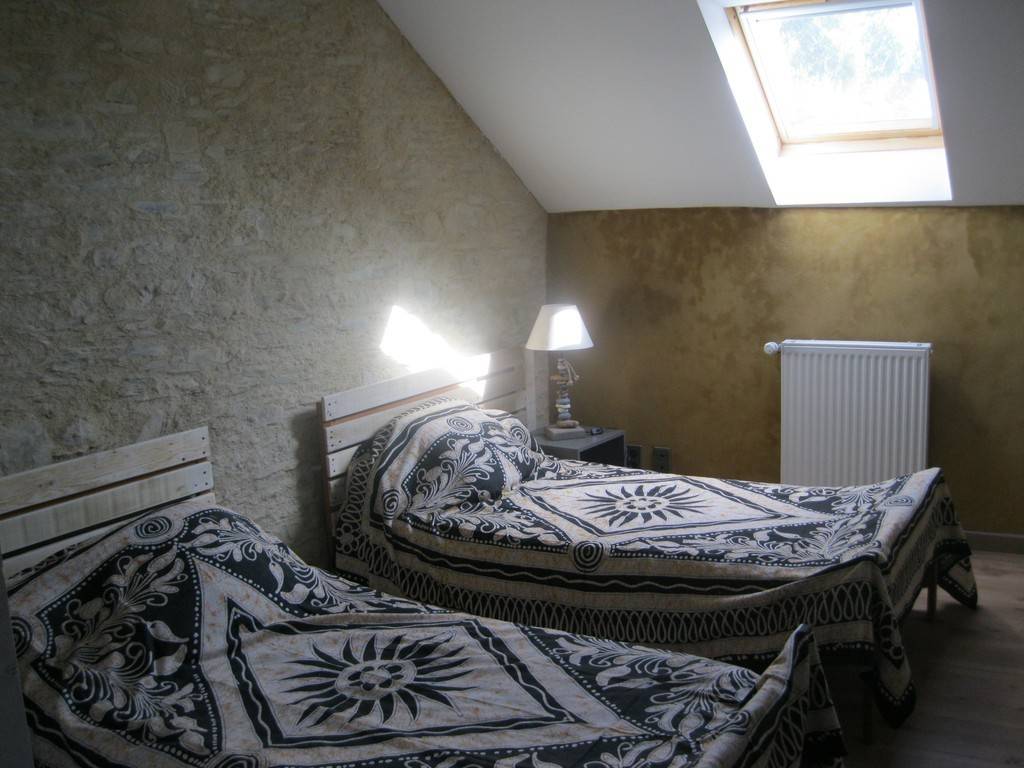 Le gîte des Rivières est l'ancienne remise d'une ferme au bord de la Mayenne et au milieu des champs. L’ancienne remise en pierres de 100 m² a été entièrement ré AU REZ-DE-CHAUSSEE : - Séjour de 25 m² - Cuisine équipée - 1 chambre avec 1 lit 140 - Salle d’eau avec douche à l’italienne, baignoire et siège bébé, lavabo PMR,toilettes sèches A L’ETAGE : - 1 chambre avec 1 lit 140, lit bébé - 2 chambres avec 2 lits 90 dont 1tiroir chacun, avec jeux pour enfants - Salle de bain/Wc à chasse d'eau