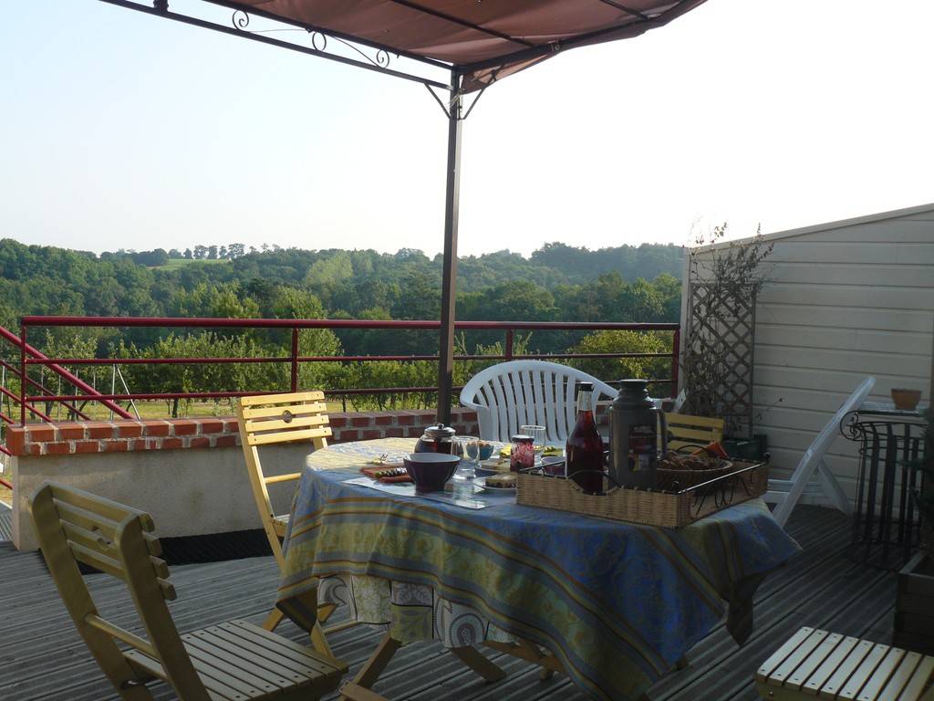 - notre Maison d'hôtes au dessus de notre cave, avec 2 chambres d'hôtes en éco-construction esprit chalet, terrasse panoramique sur les coteaux de la Sèvre et le vignoble , avec chacune salle d'eau et WC privatif ; couchage 5 personnes ( 2 lits 160 séparables sur demande) , lit bébé et/ou enfant . Au centre la pièce de vie commune avec coin cuisine, petit salon ( BZ couchage 140 ) ouverte sur la terrasse . Formule gîte possible weekend et séjours courts